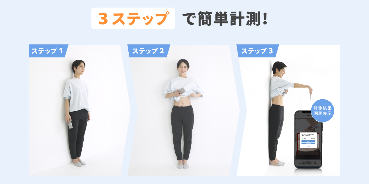 スマホ1つで腹囲を計測、3D腹囲計測機能とは