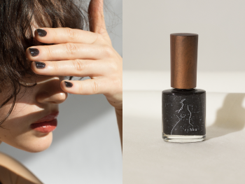 rihka ネイルポリッシュ「lens」からインスパイアされた、品のあるカジュアルスタイルにぴったりの混じりけのない美しいブラック。