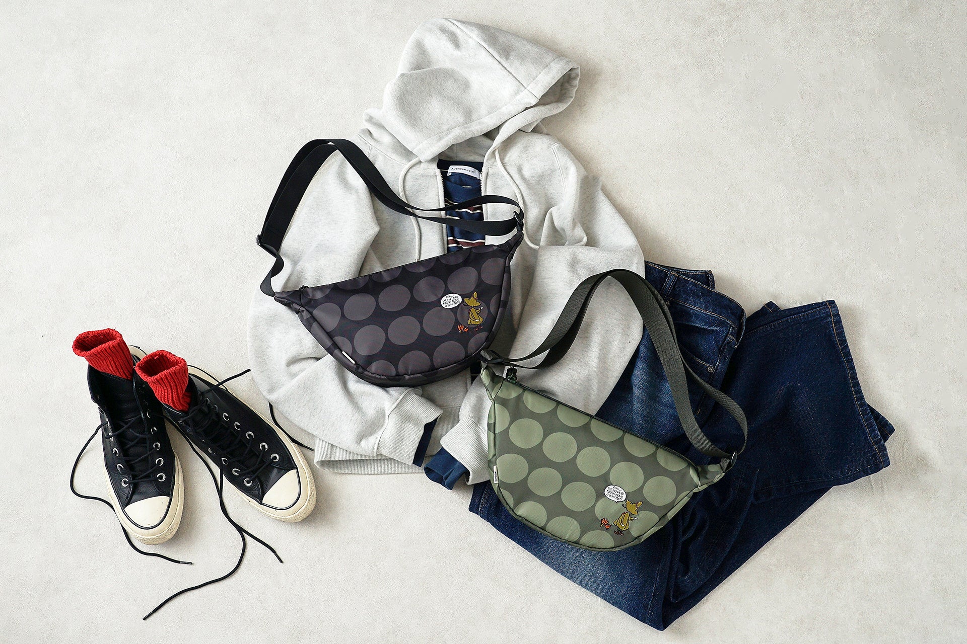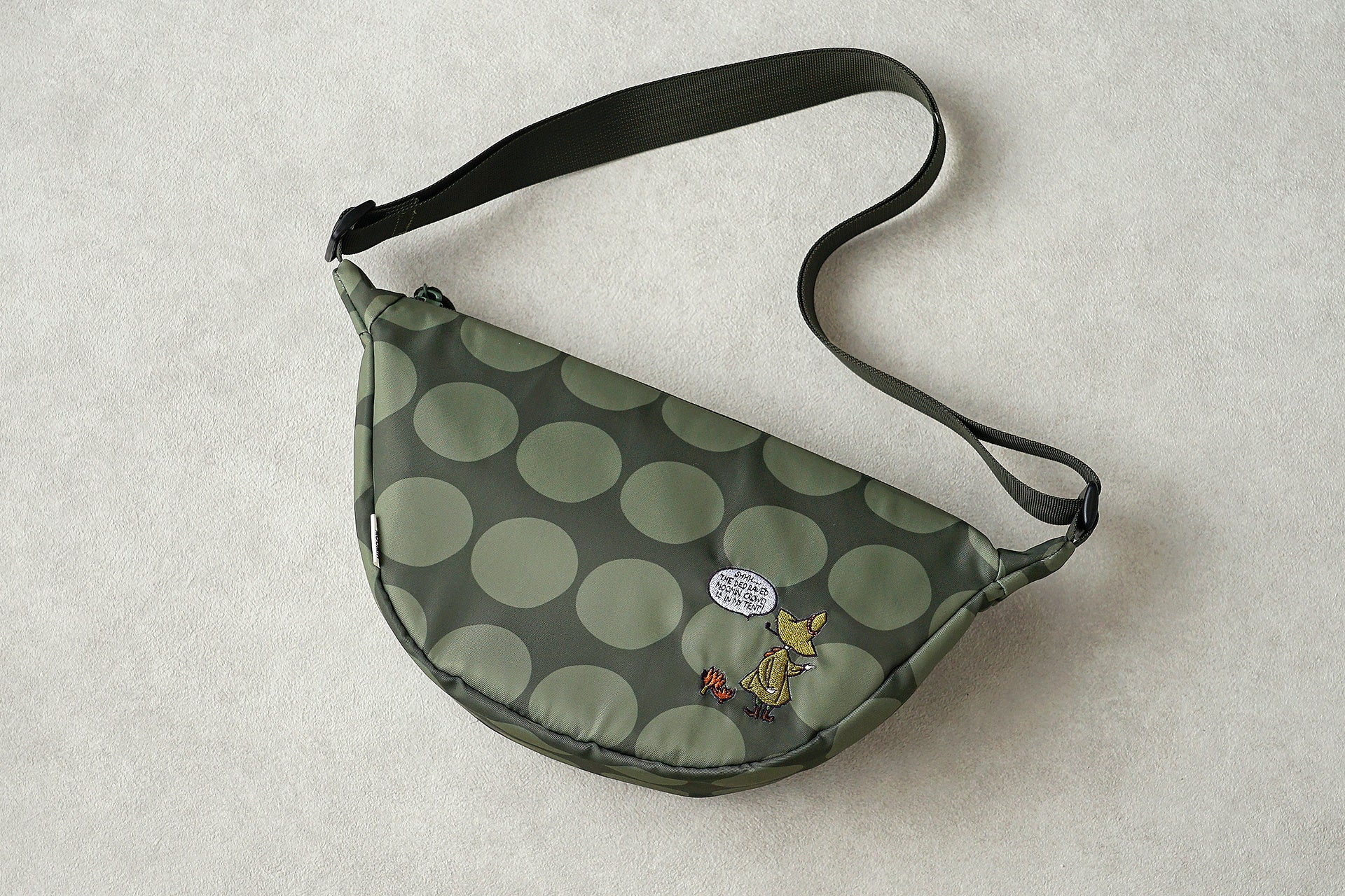 【ムーミン】「約140g」の軽さ!行楽シーズンに活躍する、スナフキン刺繍入りの高機能「三日月ショルダーバッグ」新登場。