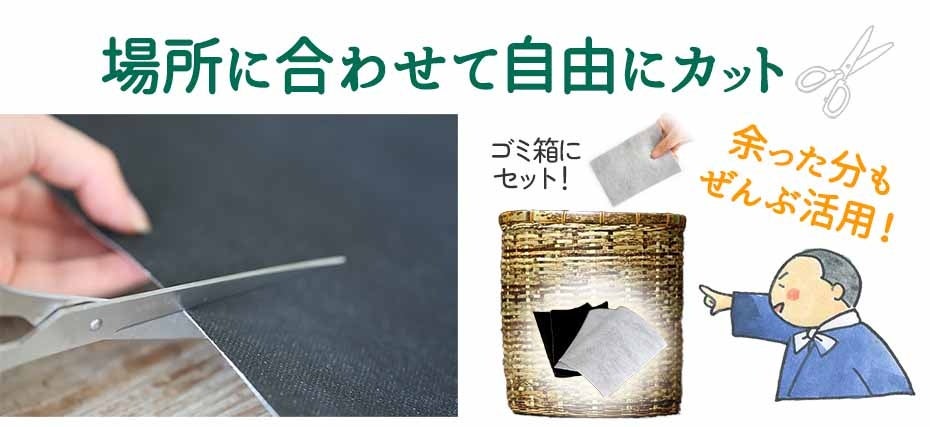 シートはハサミで簡単にカットでき、設置場所に合わせて自由にサイズ調整が可能です。残った切れ端も、ゴミ箱の底に敷くことで臭いや生ごみ対策に役立てることができます。