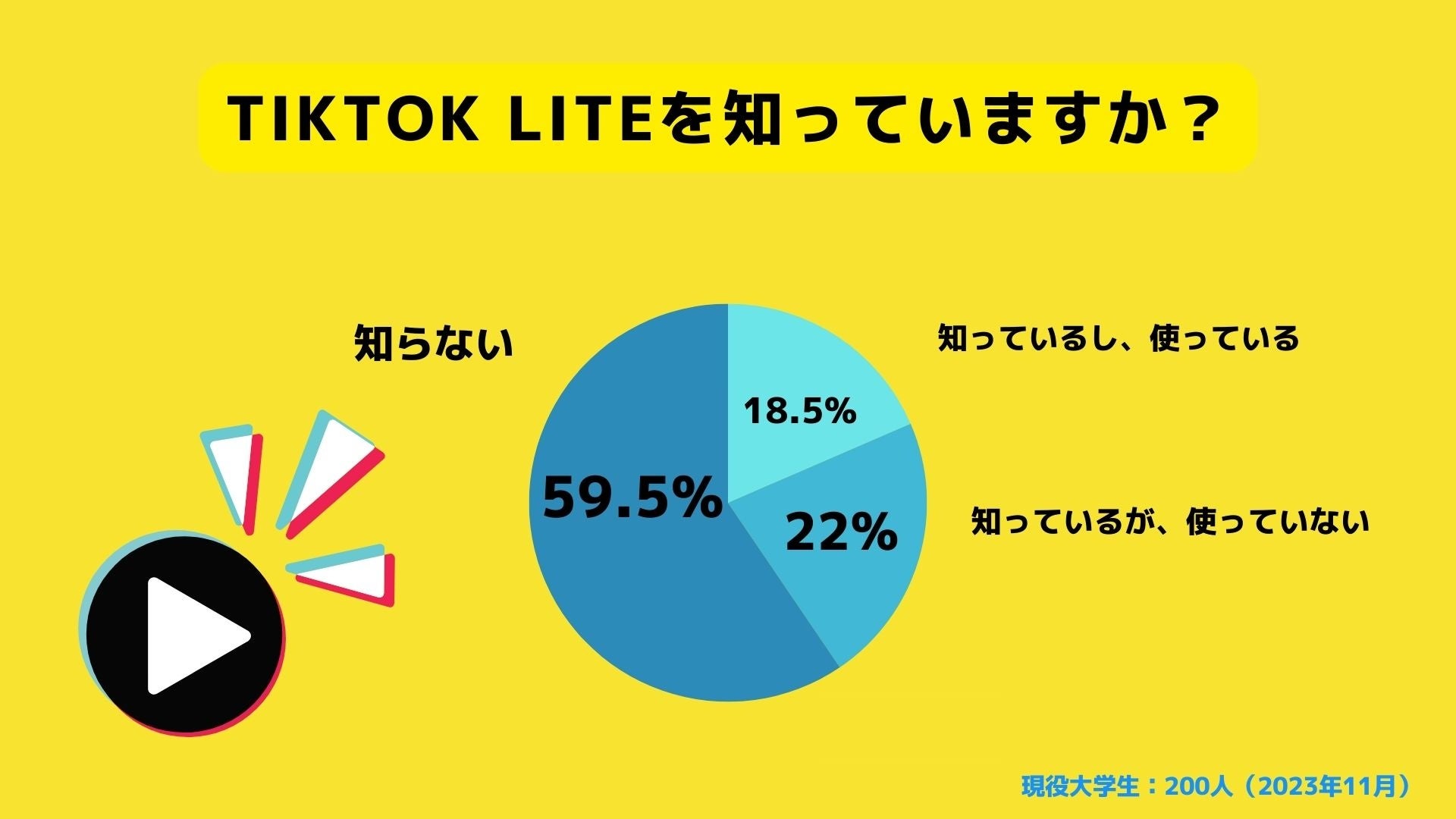 大学生のTiktok lite認知率は40.5%、利用率は18.5%。