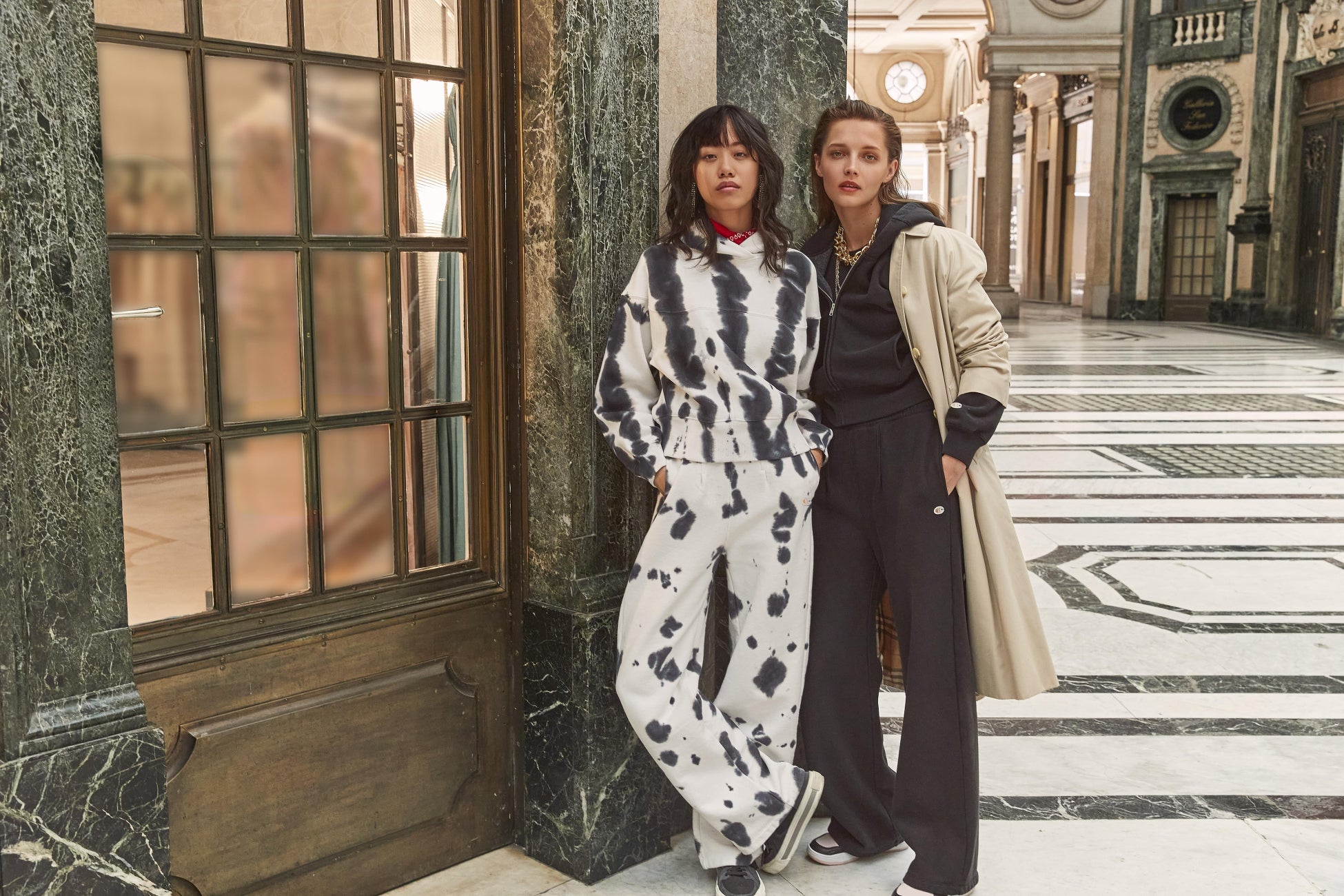 また、ブラック、ベージュ、オックスフォードグレー、ピンクを基調にしており、タイトなカットソーやスウェットシャツ、ゆったりとしたスウェットパンツ、バイカーショーツは現代的にアップデートされたブラックのタイダイ柄で登場します。