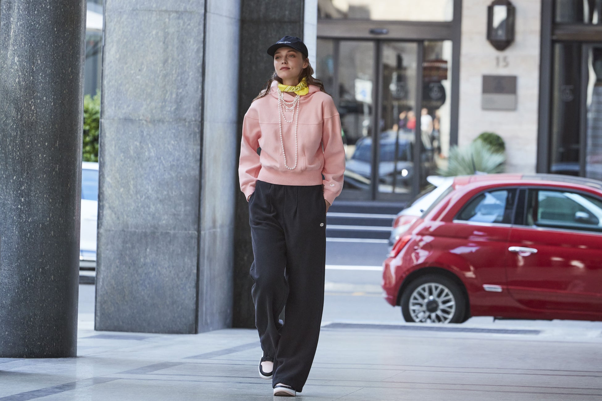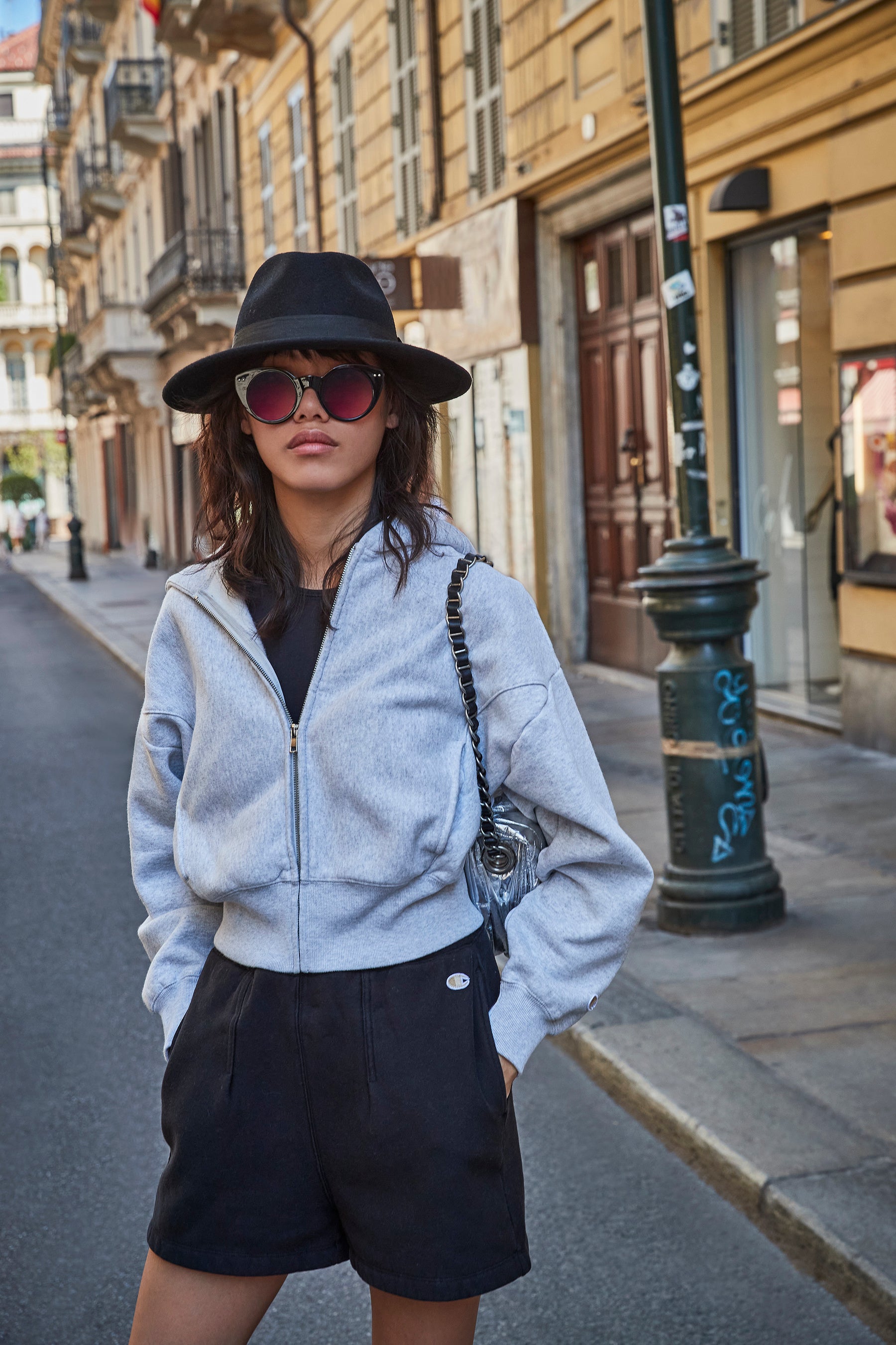 本コレクションでは、Championの定番アイテムであるフーデッドスウェットシャツやクルーネックスウェットシャツをよりフェミニンなシルエットへと落とし込んでいます。様々なレングスや、ウォーキングなどのアクティビティに合わせて高めに設定したウエストポジション、デザインチームがコルセットから着想を得た魅惑的なディテールなど、新たな再構築や進化をもたらしています。