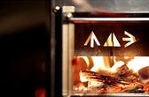 またロケットストーブとしては珍しいガラス窓を設置することで、内部の炎を眺めることが出来ます。