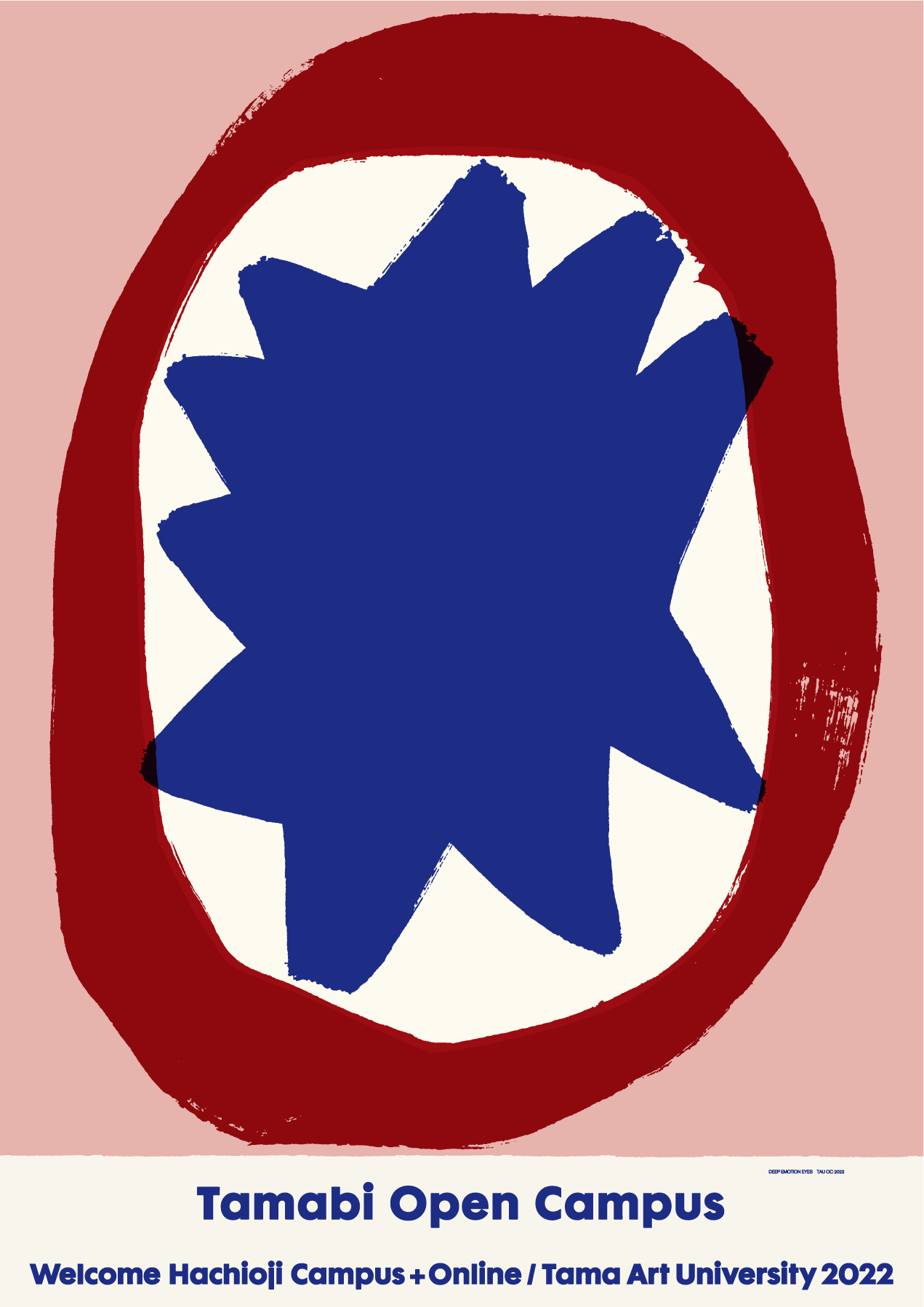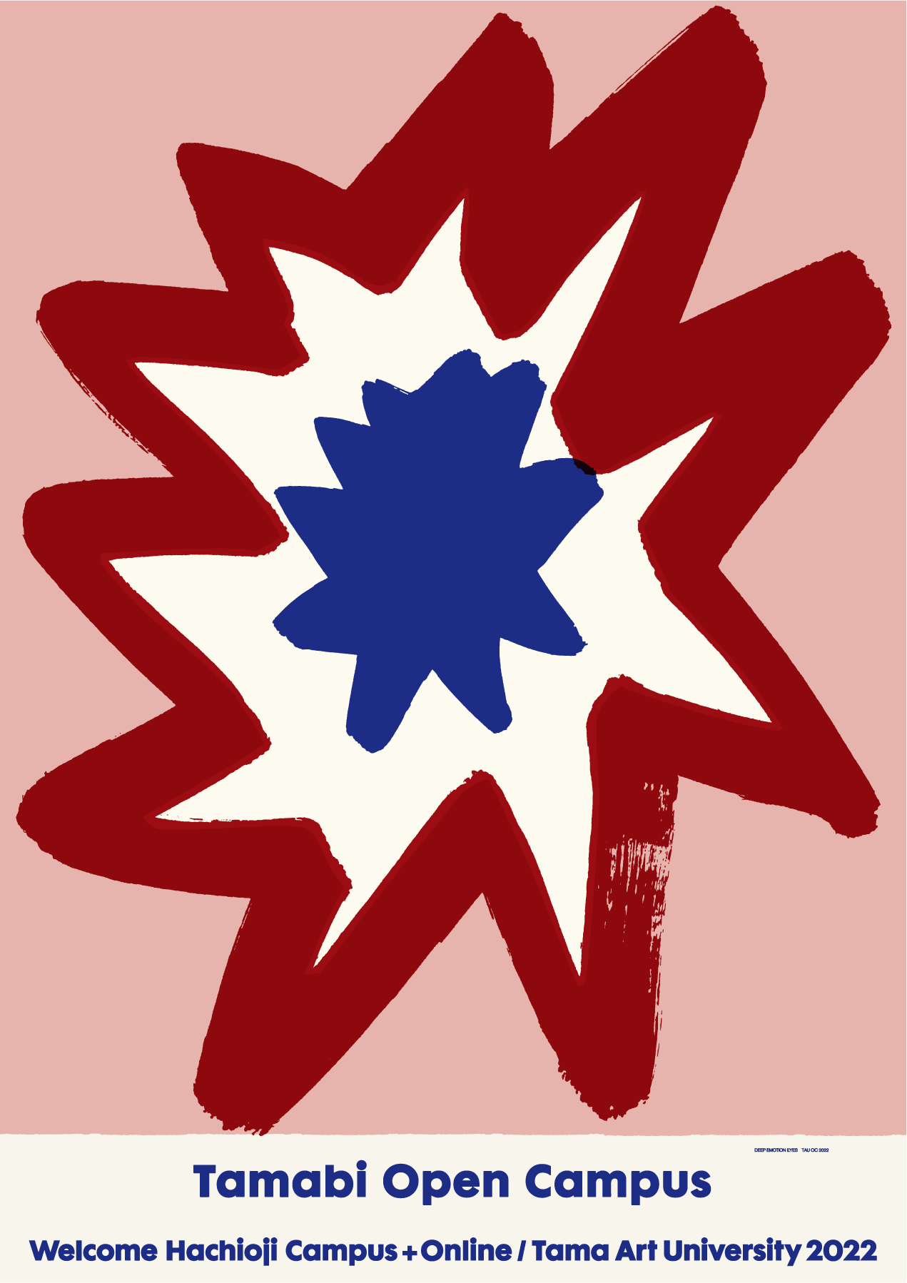 多摩美術大学の校章は、前身の多摩帝国美術学校時代に初代校長・杉浦非水が『美』をアイコン化し、1995年に五十嵐威暢によってさらに進化をとげ、現在のデザインに至っています。その『美』に内包されている大きな力を、デザインによってさらに強く視覚化しました。『美』によって、これまでの常識を突破し、新しい時代を切り開いていこう!という多摩美術大学オープンキャンパスのメッセージです。