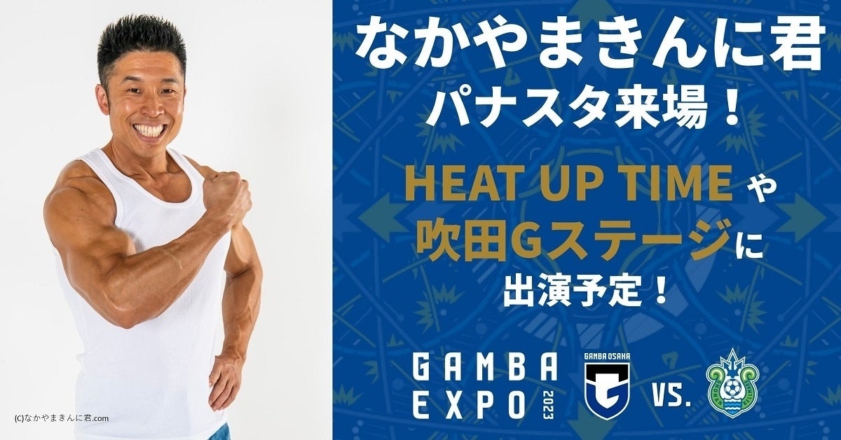 なかやまきんに君にはスタジアム内番組「HEAT UP TIME」や吹田Gステージでのパフォーマンス等に出演いただき、年に1度のGAMBA EXPOでガンバ大阪へ「パワー!」を送ってもらいます!