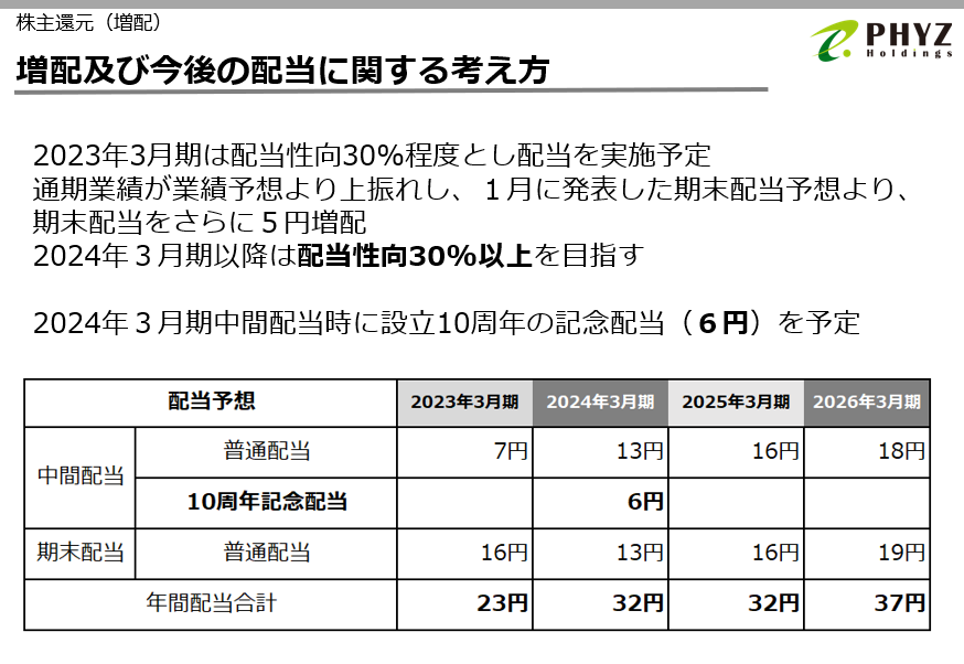 また、2024年3月期第2四半期末については会社設立10周年の記念配当も予定しております。
