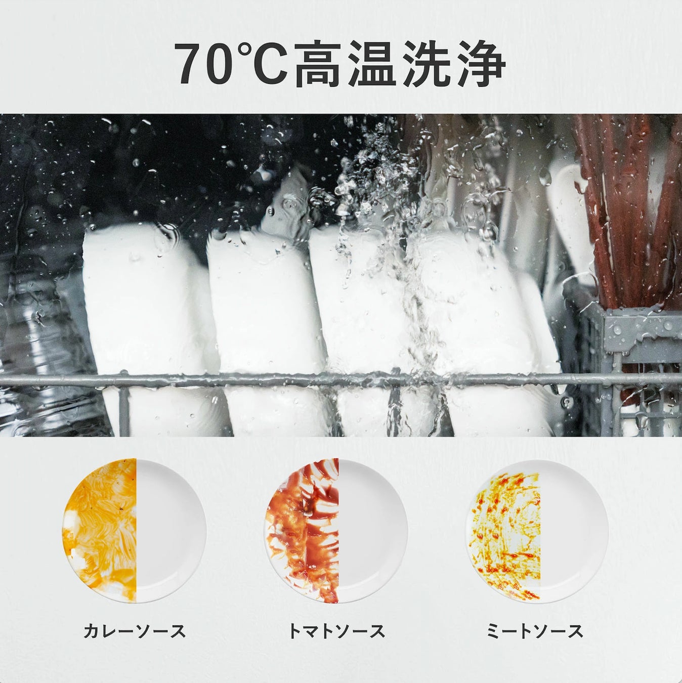 強力なコースでは、約70℃の高温洗浄が可能、手洗いよりも効率的に洗浄します。食器を傷つけずにクリーンに仕上げます。