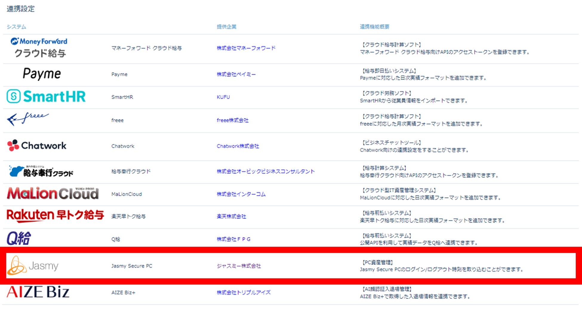 ソニービズネットワークス株式会社(本社:東京都渋谷区)が提供するクラウド勤怠管理システム「AKASHI」は、ジャスミー株式会社(本社:東京都港区)が提供するブロックチェーン活用の強固なセキュリティソリューション「Jasmy Secure PC」とのAPIによるサービス連携を開始します。