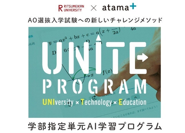 立命館大学(京都府京都市、学長 仲谷 善雄)は、atama plus株式会社(東京都港区、代表取締役CEO 稲田 大輔)と協働で、2023年度入試(2023年4月入学)より、AI教材で、各学部での学びにとって特に重要な指定単元を学習・修得する「学部指定単元AI学習プログラム(通称:UNITE Program)、以下、プログラム」を出願要件に取り入れた総合型選抜(AO選抜入学試験)を今年度より開始し、11月2日(水)に合格者37名を発表しました。実施結果および分析内容をご報告いたします。