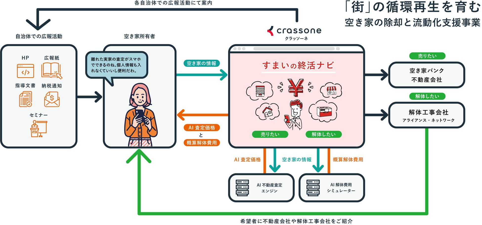 - 神栖市内の空き家の所有者に対し、解体の概算費用や土地売却査定価格を提示する「すまいの終活ナビ」を紹介(URL:https://www.crassone.jp/simulator/navi/ibaraki/kamisushi)