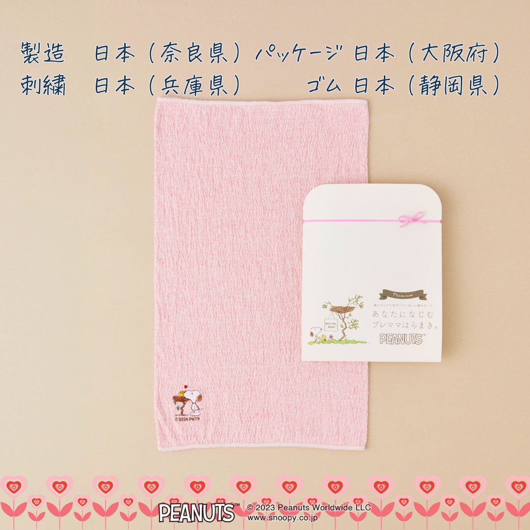 「体感温度を2度上げる」がコンセプトのゲンナイ製薬のブランド【プラスニド:千代田区、代表:上山永生】は【あなたになじむ プレママはらまき PEANUTS】 新デザインの販売を5月1日より開始します。