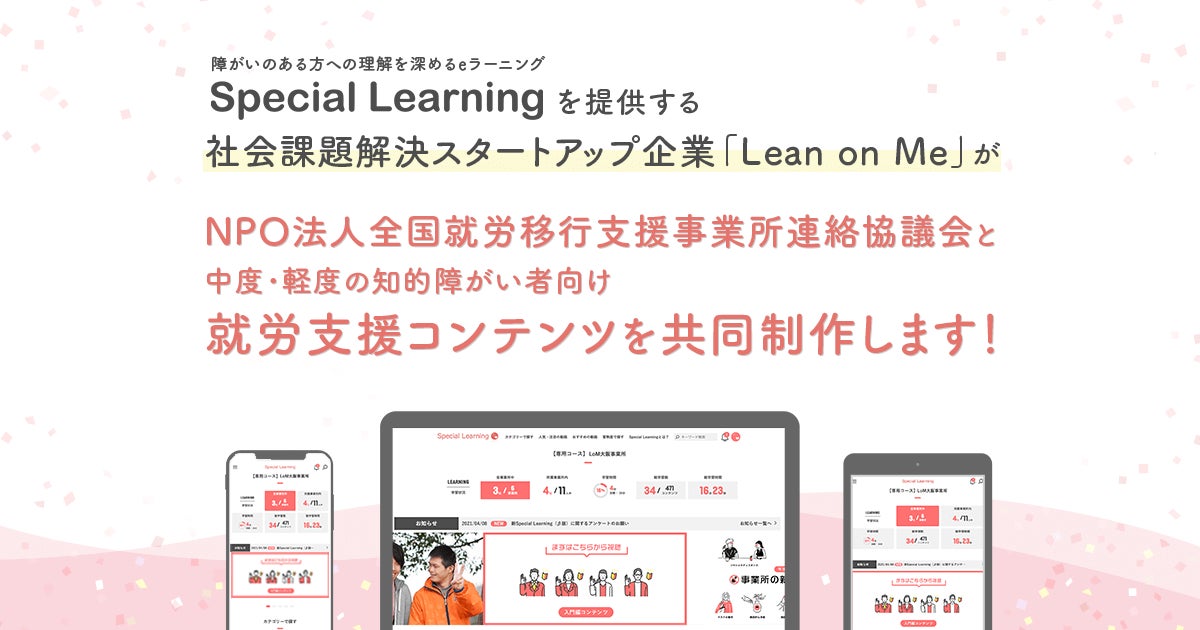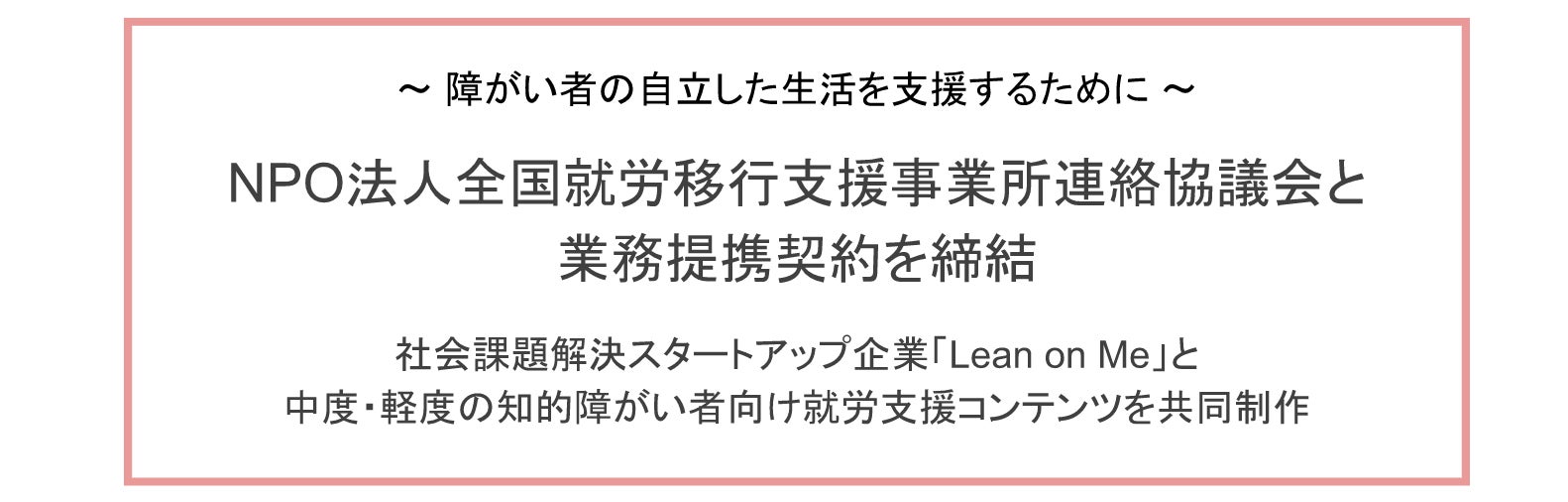 社会課題解決スタートアップ企業「Lean on Me」と中度・軽度の知的障がい者向け就労支援コンテンツを共同制作