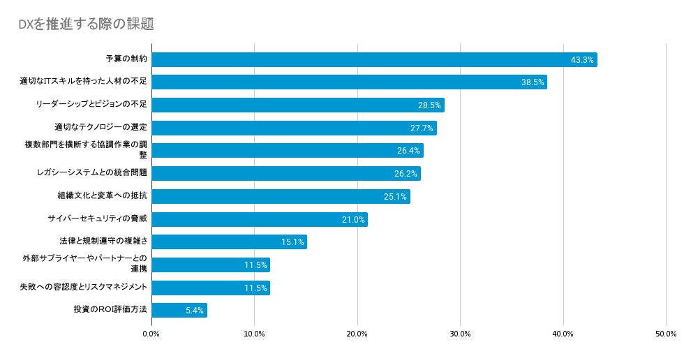 ・DX推進の課題1位は「予算の制約」、次いで推進者の不在や推進力の弱さが浮き彫りに