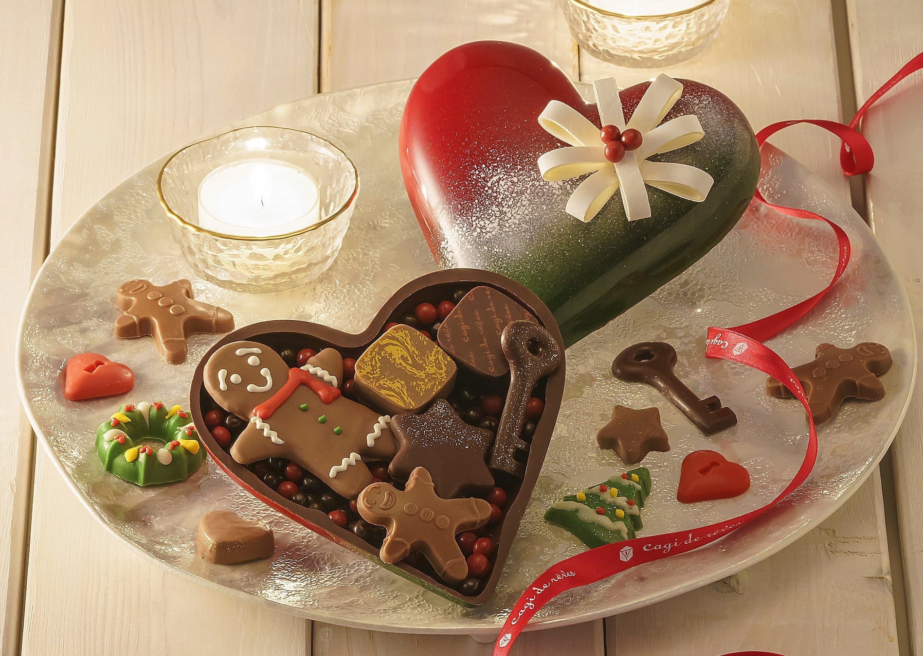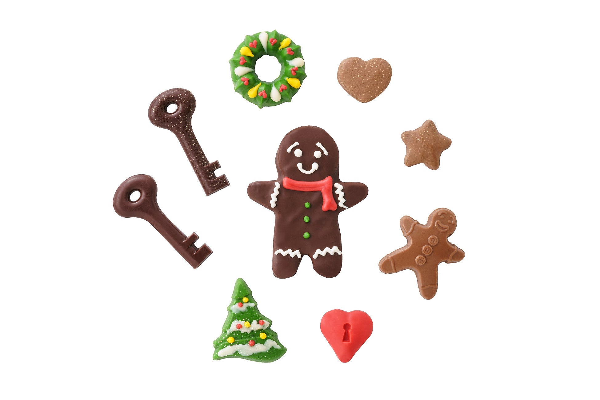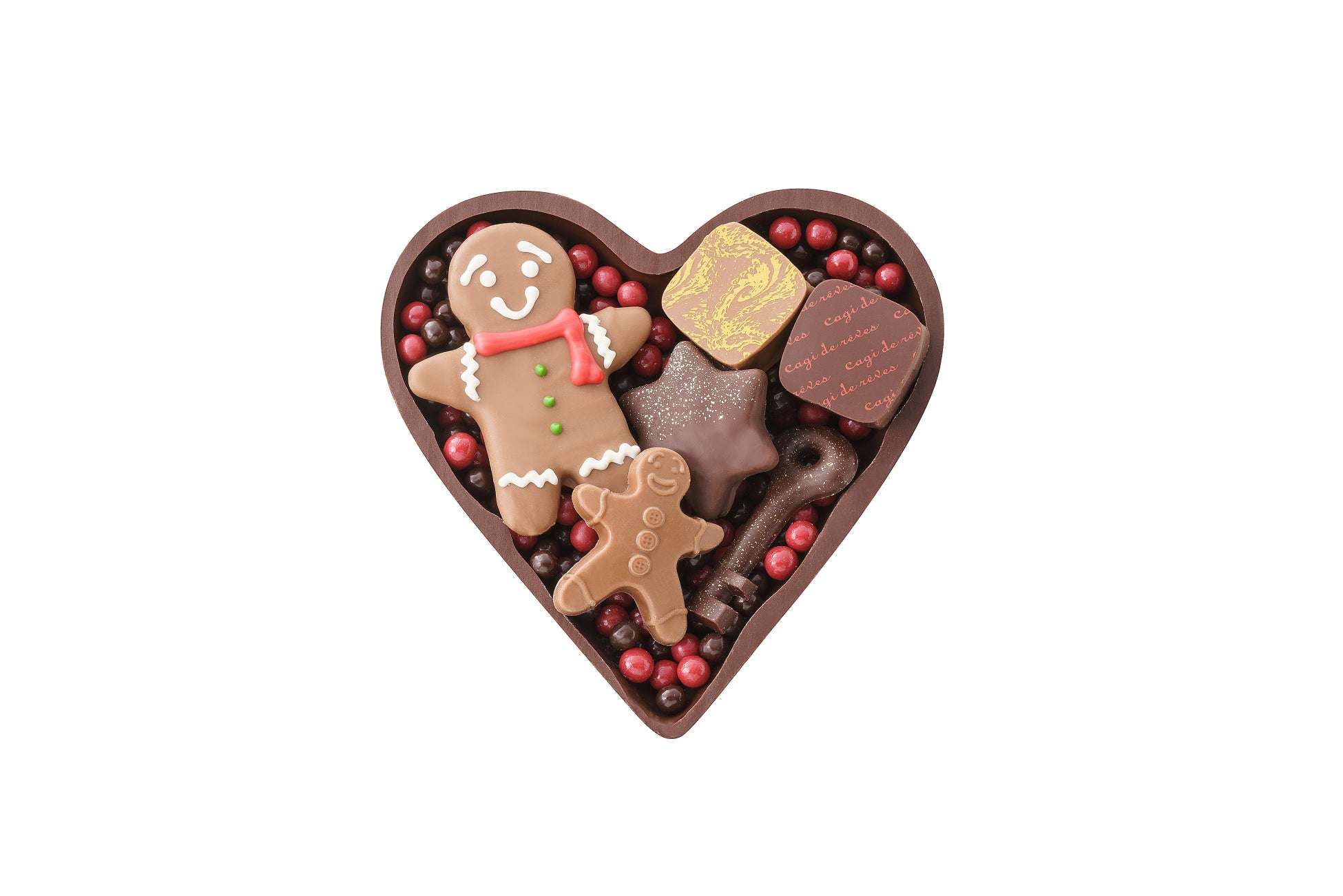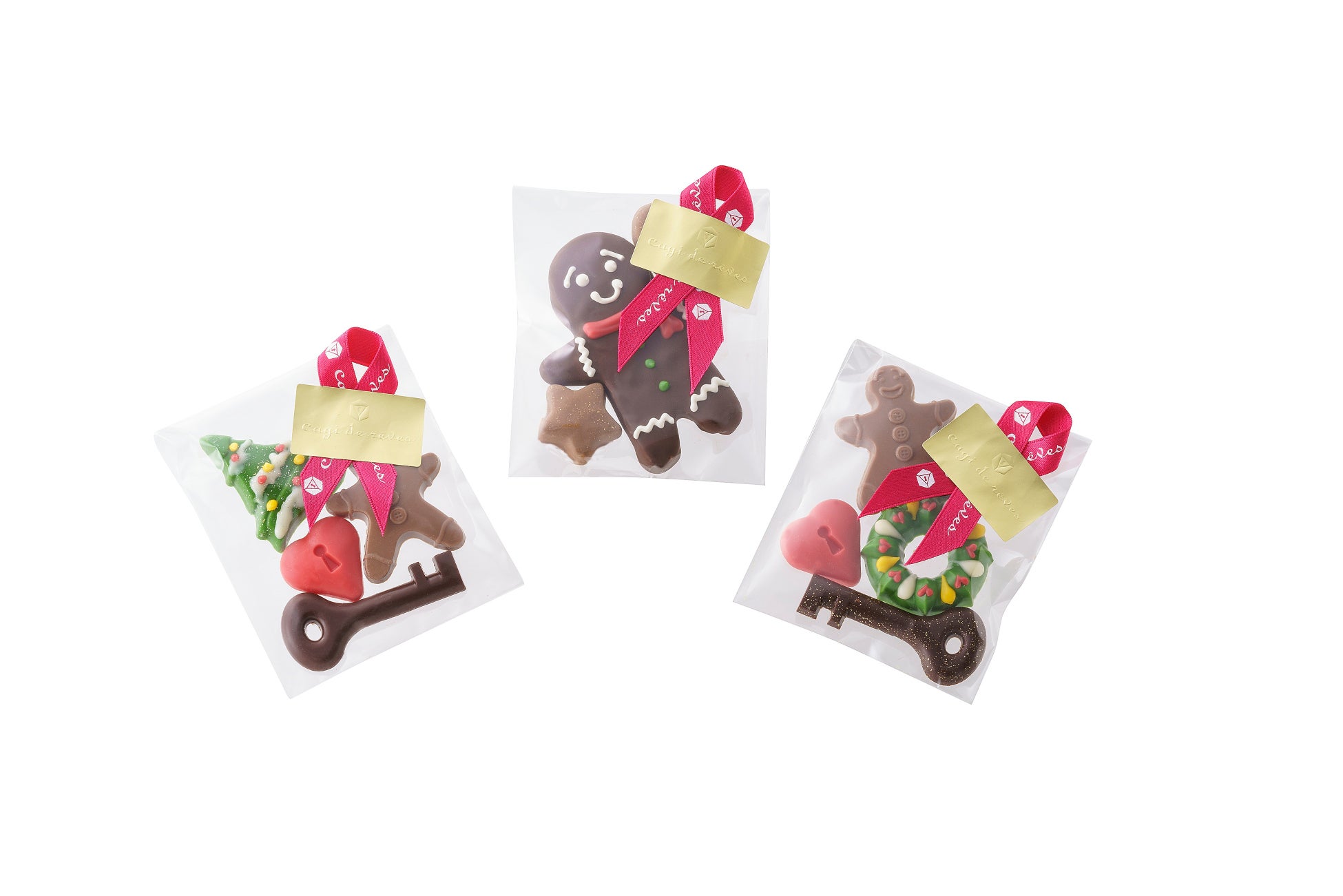 チョコレートでかわいく着飾ったクリスマスフェア限定のジンジャーマンの形のショコラサブレ入り。1度に9種のショコラとサブレを楽しむことができるキャギ ド レーブの贅沢なギフトです。