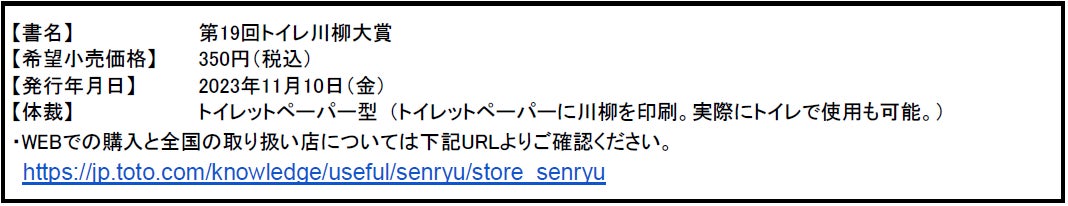 これからの季節のちょっとしたプレゼントにも トイレットペーパー型の川柳集『第19回トイレ川柳大賞』好評発売中