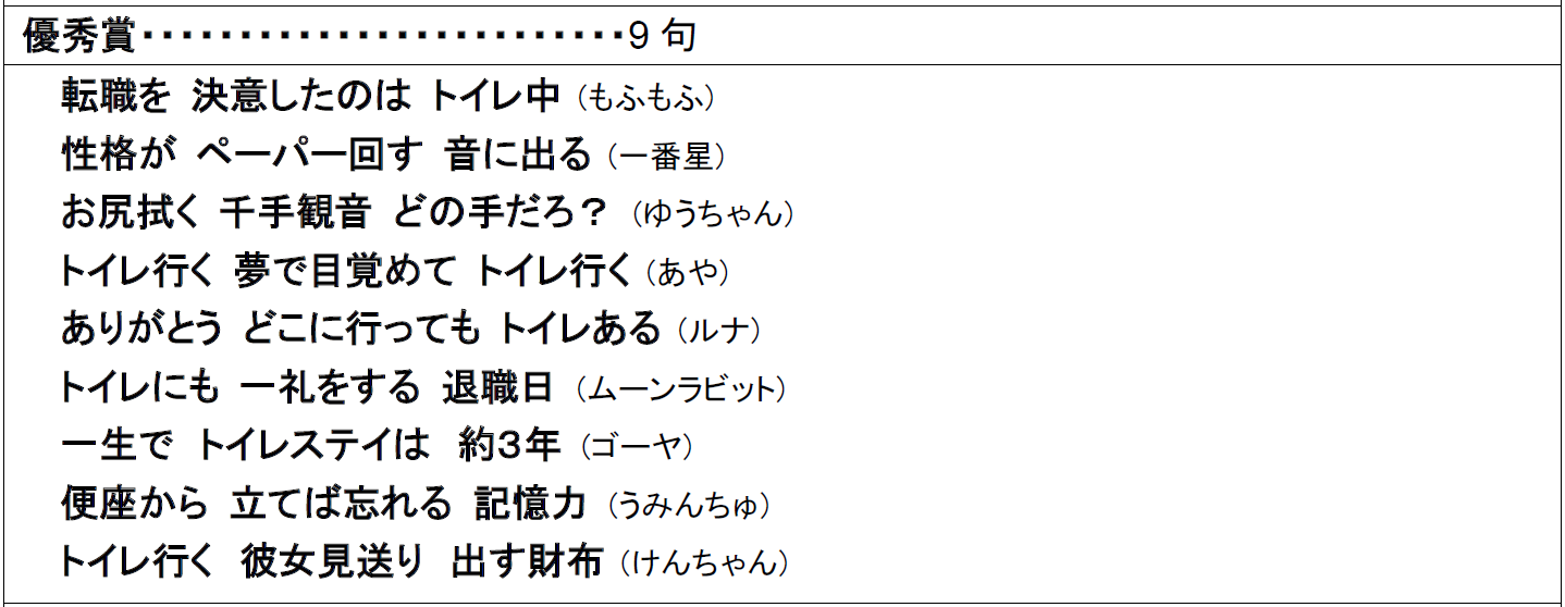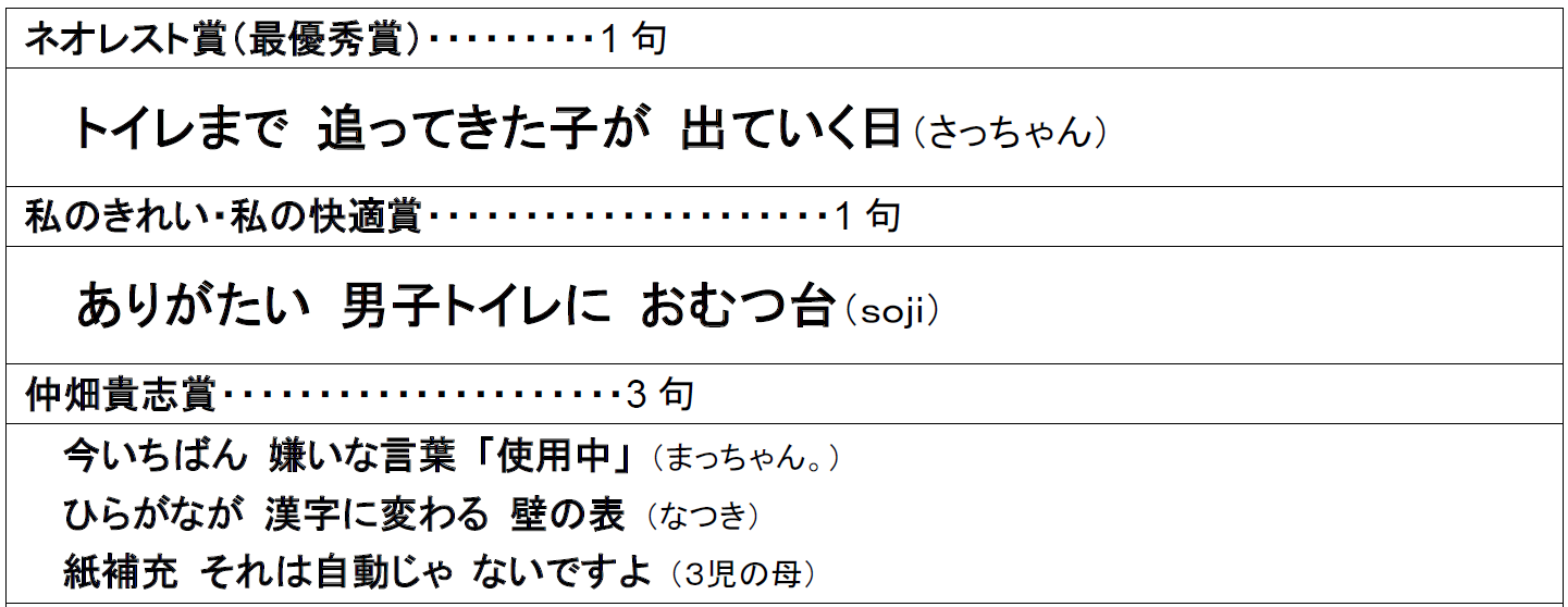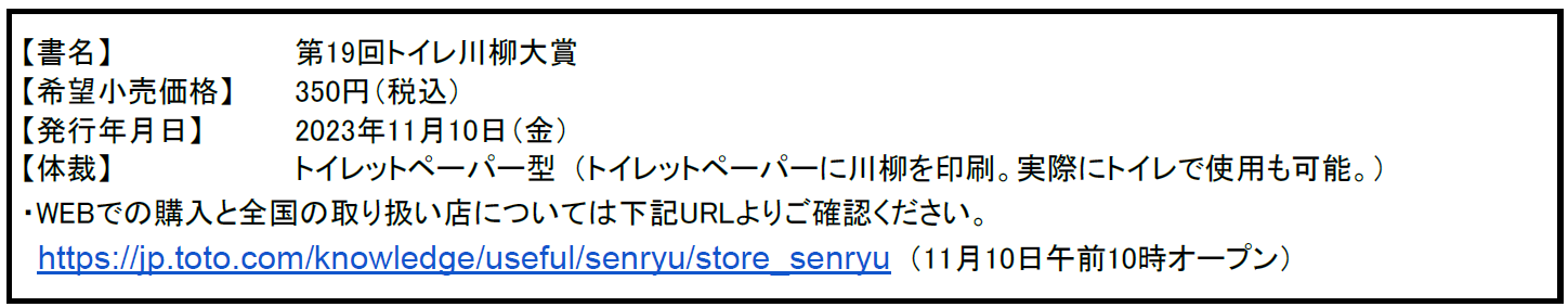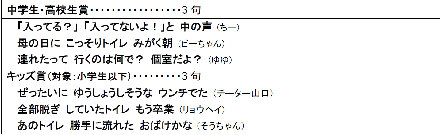 ※受賞結果は2023年10月16日のニュースリリース“第19回「トイレ川柳」結果発表”にて公開済みです。