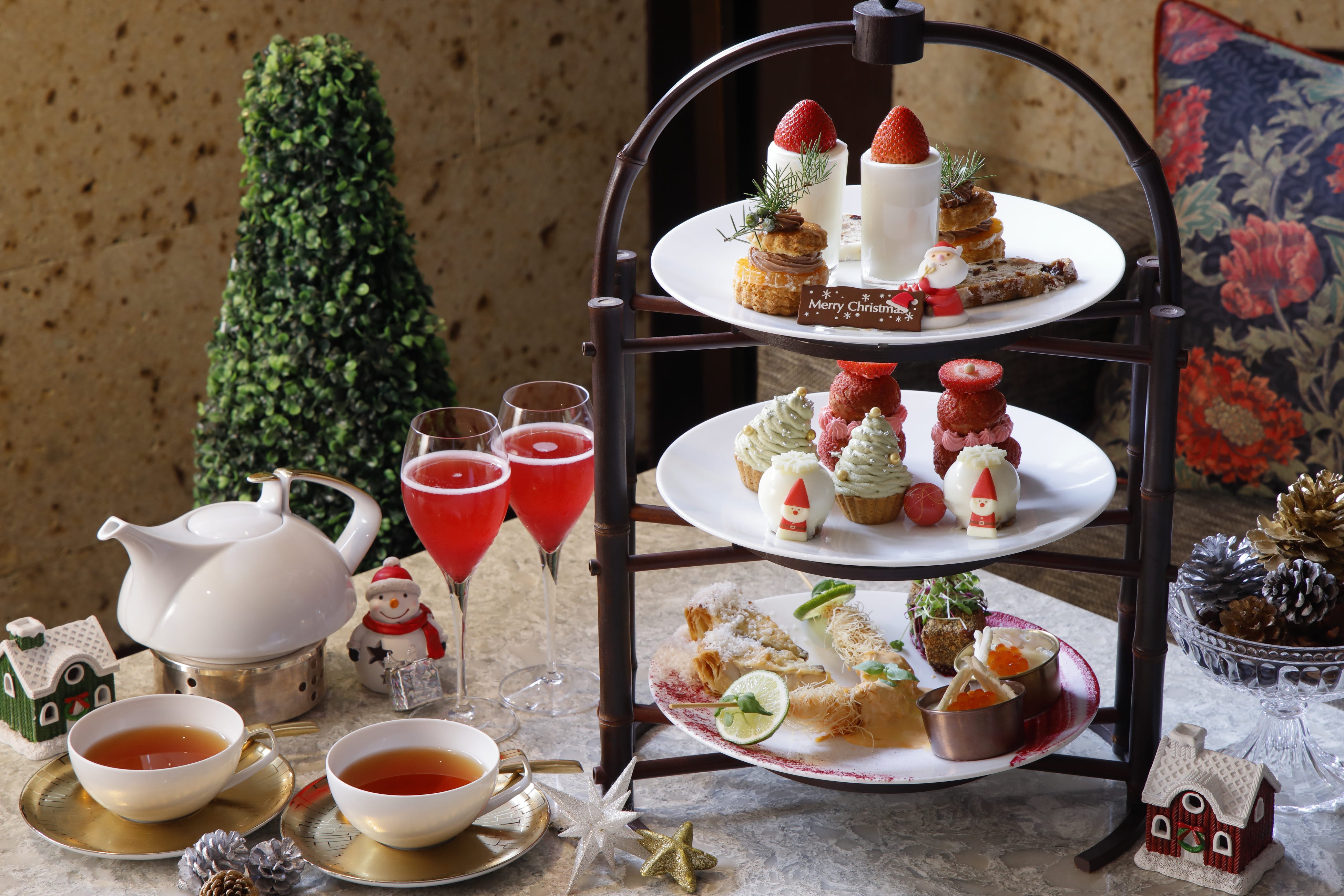 クリスマスの訪れを楽しむ華やかなアフタヌーンティーをご提供。白雪を思わせるムースショコラブランや艶やかな苺のルリジューズ、芳醇なピスタチオタルトなど、ホリデー気分を高めるスイーツがティースタンドを彩ります。セイボリーにはポルチーニ茸のキッシュや牛肉のクロケッタ、海老のカダイフフリット、イクラを添えたカリフラワーのパンナコッタなど、冬の味覚を贅沢に盛り込みました。