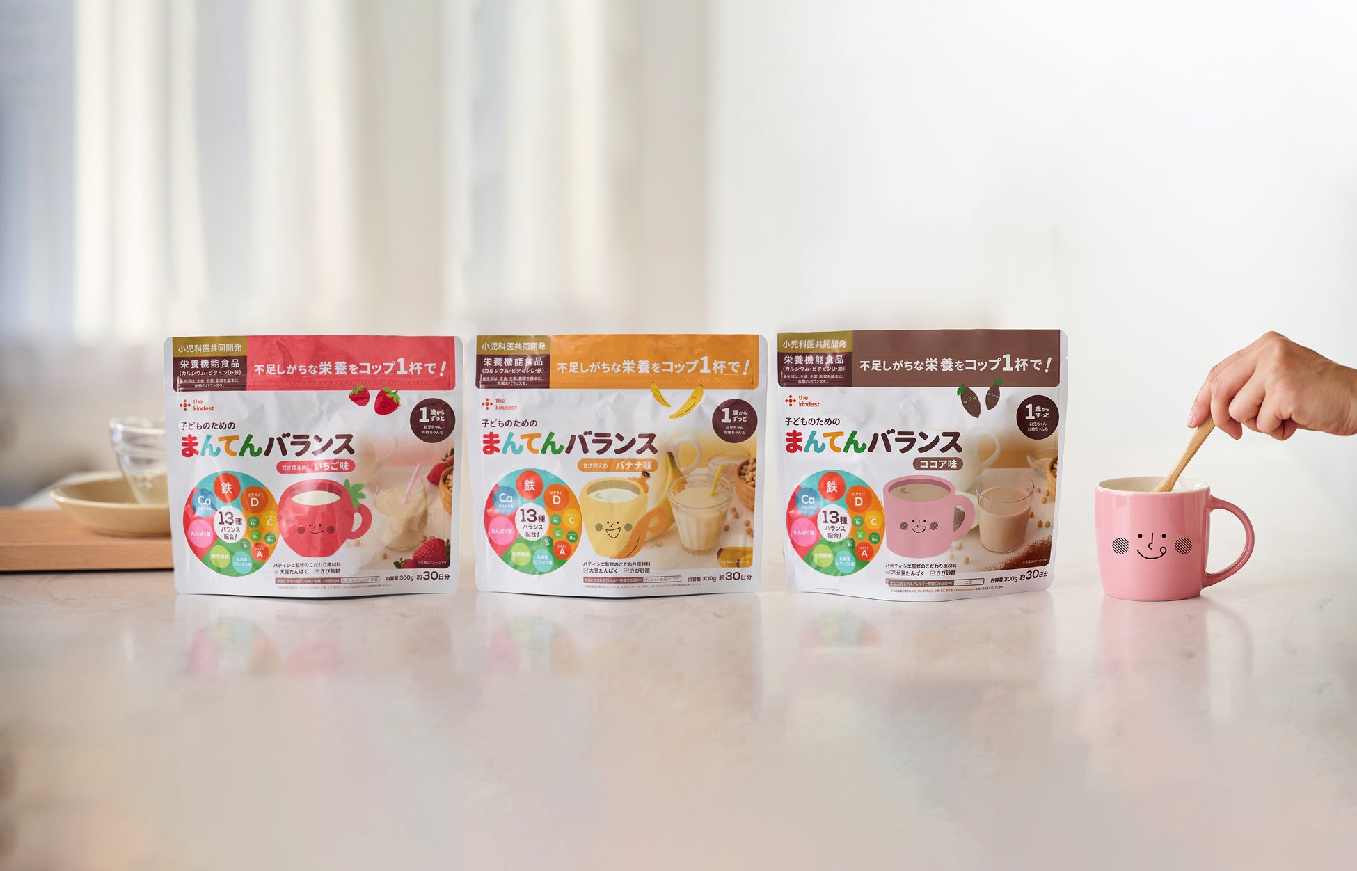 赤ちゃんからの食育をサポートするブランド「the kindest(カインデスト)」を展開する株式会社MiL(本社:東京都港区、代表取締役CEO:杉岡 侑也)は、幼児期に不足しがちな13種類の栄養をサポートする「子どものためのまんてんバランス」から、新しくバナナ味といちご味を発売いたします。販売は、2025年3月18日(火)よりオンラインショップや全国の取扱店で開始いたします。