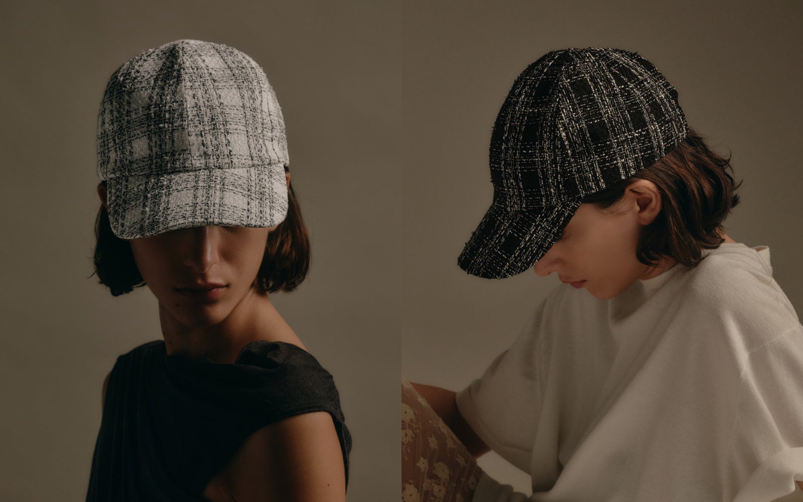 異なる質感が交差する格子柄を、モダンに昇華したキャップ。