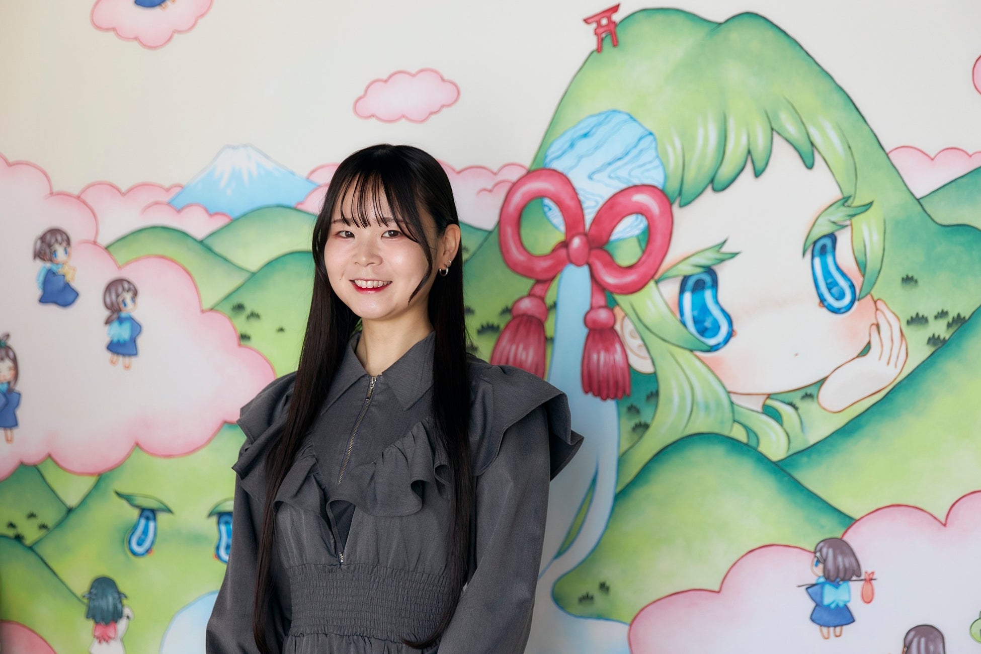 1991年茨城県生まれ。横浜美術大学卒業。神や自然現象など人知を超えた存在を大小様々な女の子たちを描くことにより表現している。近年では日本の土着的な文化や日常的な気配などをテーマとした作品を多く制作。