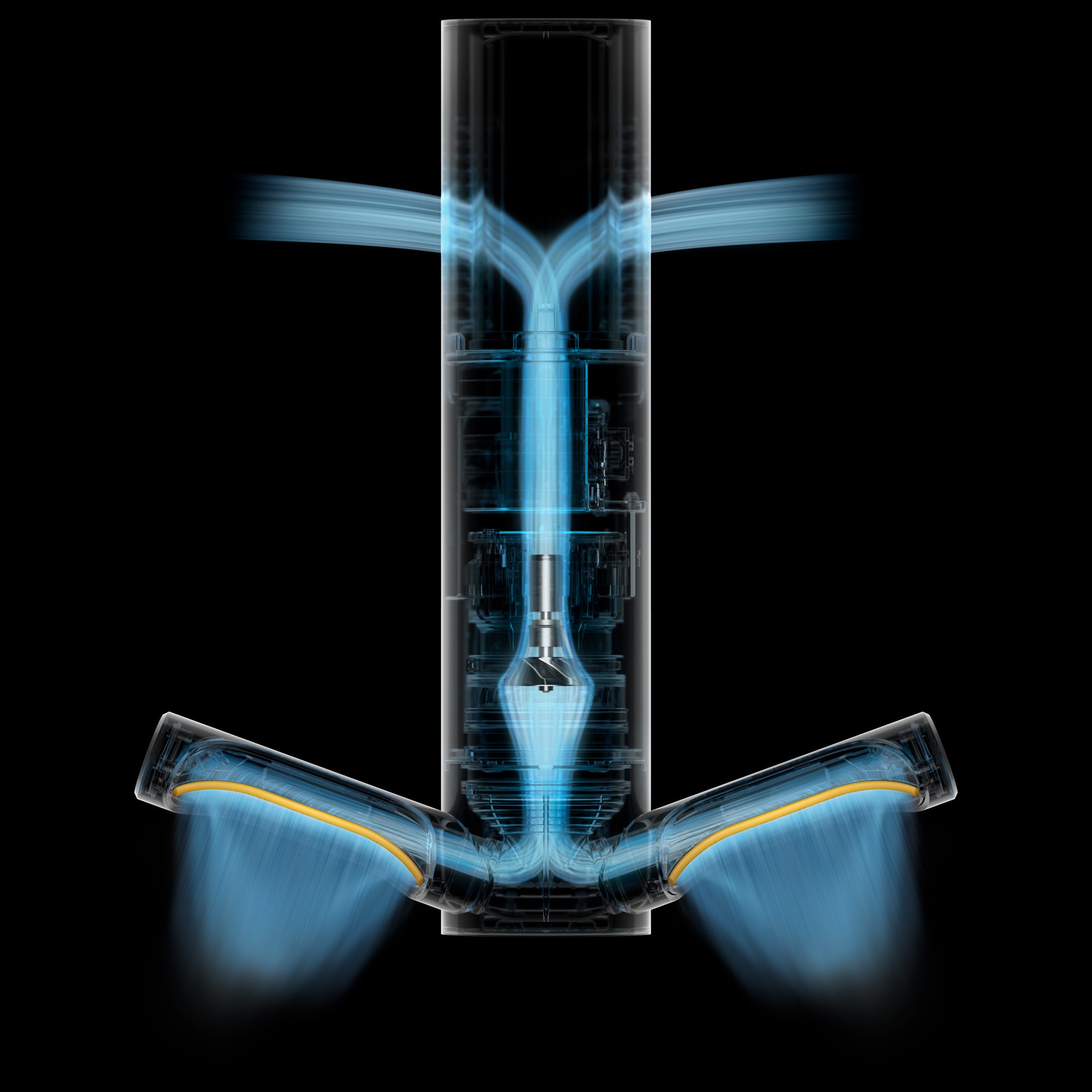 ダイソン デジタルモーターV4のモーターハウジングはモーター内部の空気流路を調整し、騒音を発生させる乱流を抑えます。モーターはシリコンゴムの上に埋め込まれているため、騒音がさらに低減されます。さらに特別に設計された連続気泡フォームの消音装置によって、モーターに出入りする空気の振動が吸収されます。
