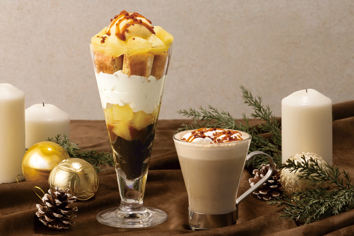 【nana's green tea】キャラメル×ほうじ茶のホリデーシーズン! 新商品・あたたかいほうじチャイと、昨年好評のりんごパフェが再登場 11/1〜