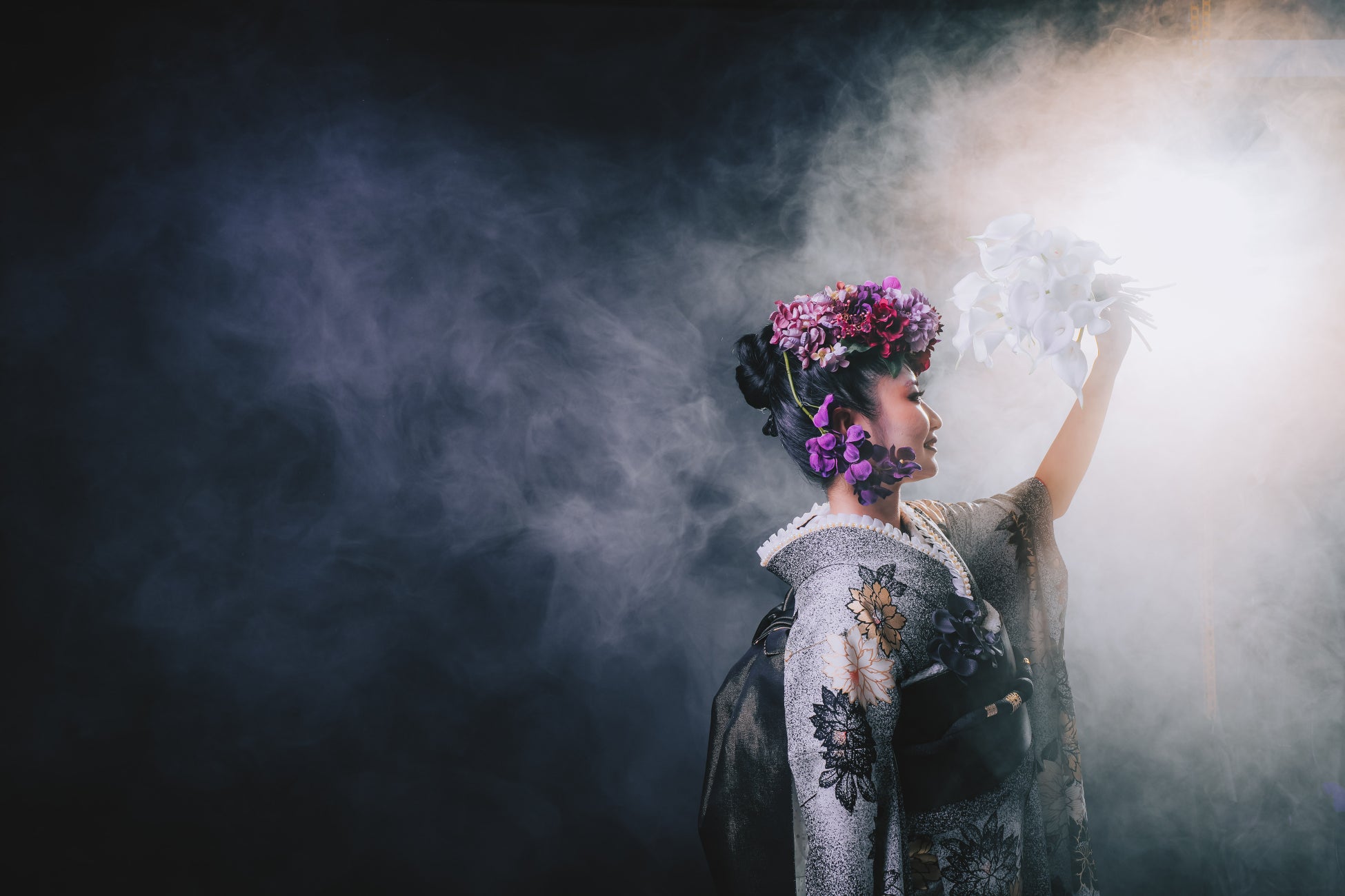 巨大な白ホリゾント空間で光を自在に操り、着物の色彩や表情の陰影までも美しく描き出す、唯一無二の撮影体験。フォトグラファー SOTA の感性が導くアングルと光が、一生に一度の節目をドラマティックに切り取ります。