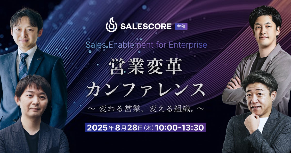 「達成の喜びをあたり前に」をビジョンに掲げるSALESCORE株式会社(本社:東京都渋谷区、代表取締役:中内崇人、以下:当社)は、2025年8月28日(木)に営業変革カンファレンス「Sales Enablement for Enterprise - 変わる営業、変える組織。-」を開催することをお知らせいたします。