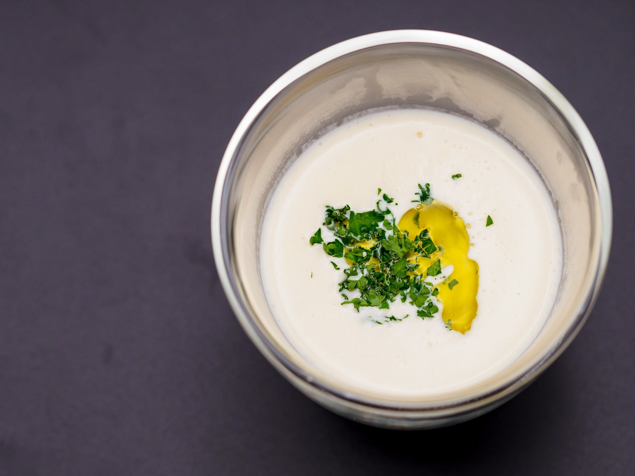 あやめ雪蕪の甘みと旨みを生かしながら、バターと生クリームを使用し、濃厚な味わいのスープに仕上げました。