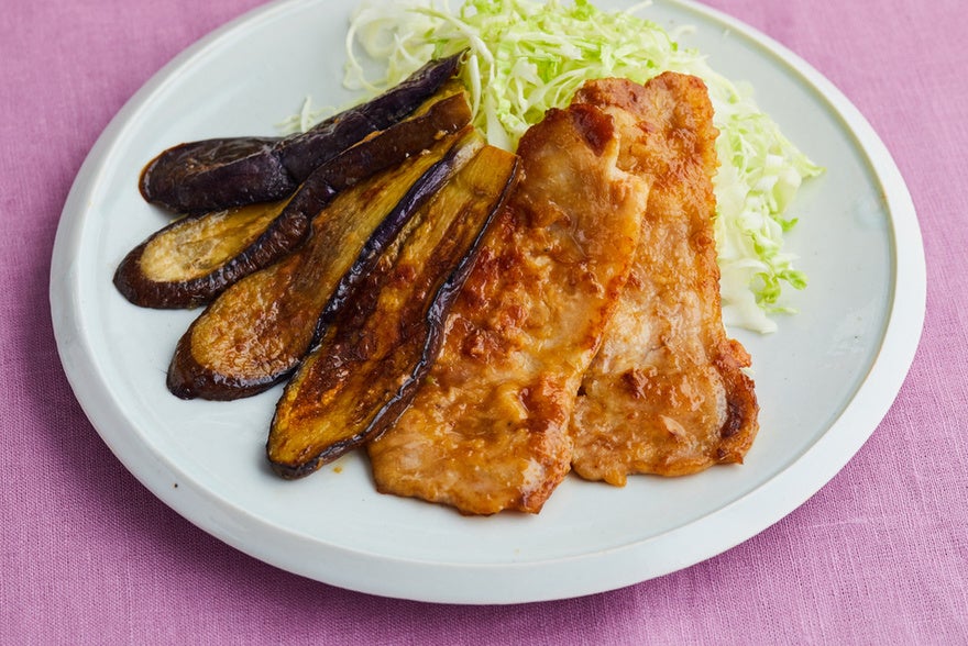 ◼ 豚肉となすのしょうが焼き(https://oishi-kenko.com/recipes/19700)