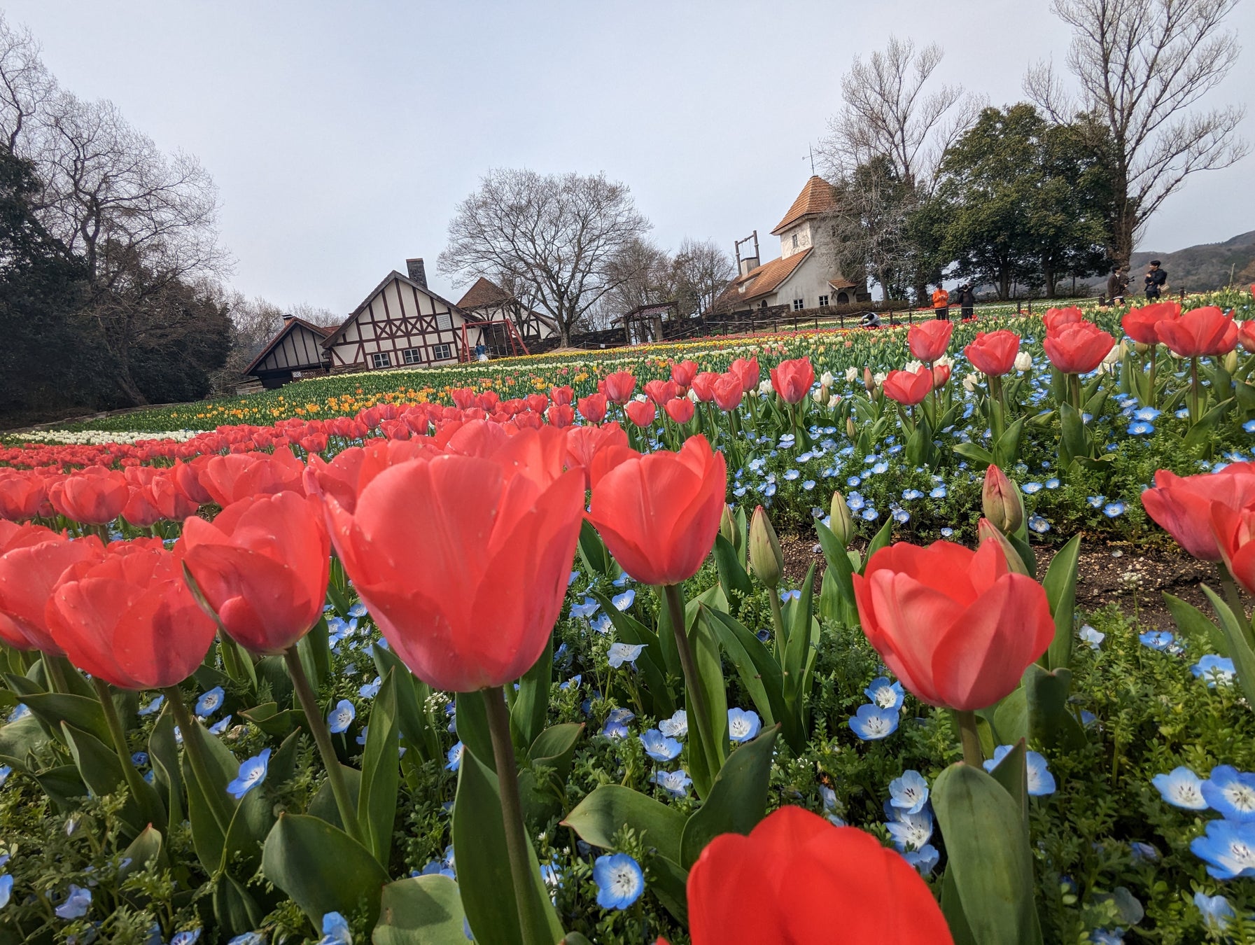 チューリップの見頃予想は4月上旬~4月中旬の予定です。ネモフィラはこれから咲き始めて、