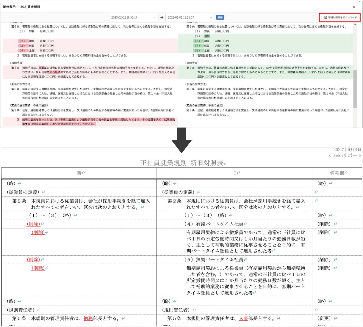 また、改正作業においては、規程本文と新旧対照表をそれぞれ別々にWordで作成する業務負担があり課題を抱えていました。