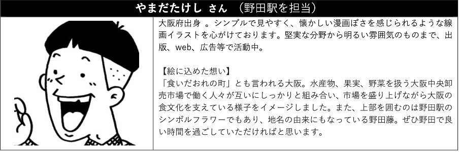 第1弾・第2弾に引き続き、オリジナルNFT駅スタンプの製作には、関西にゆかりのあるイラストレーター・アーティストにデザインをお願いし、この企画だけのオリジナル駅スタンプに仕上げています。