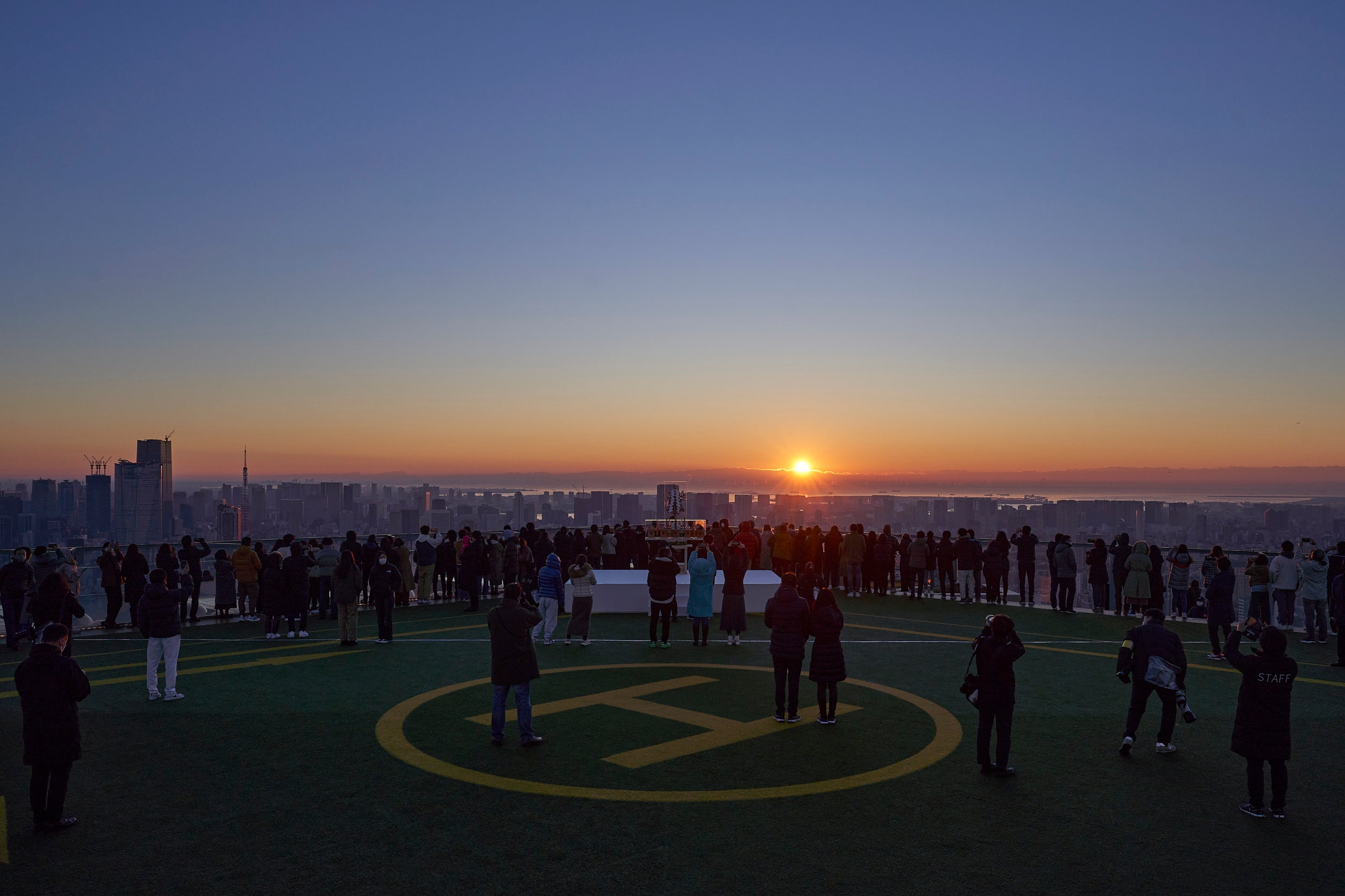 渋谷最高峰、地上229mに位置する本施設は、渋谷で最初に日の出を迎える場所でもあります。また、初日の出鑑賞だけではなく、屋上展望空間「SKY STAGE」に特別祭壇を設け、渋谷にある金王八幡宮の神主に斎主としてお越しいただき、年の初めに皆さまの幸せを祈願する神事「新春祈願」を執り行います。