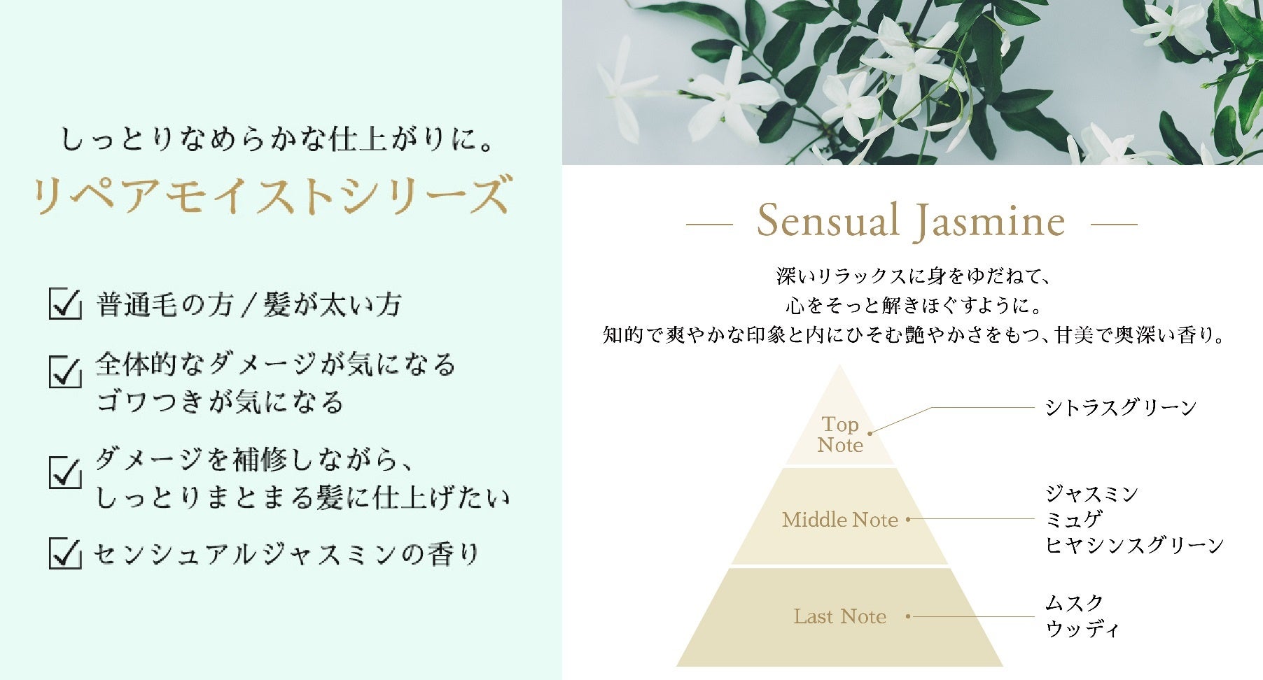 写真 左)センシュアルジャスミン リペアモイスト シャンプー & トリートメント