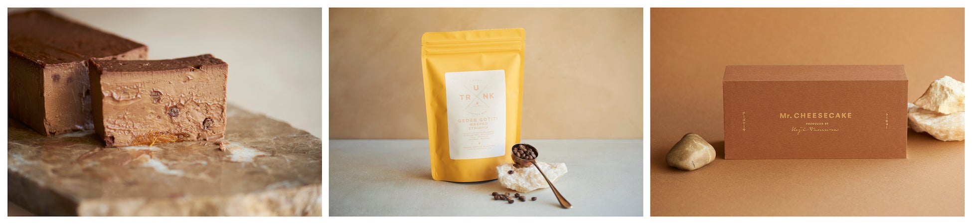 ミルクチョコレートのような優しく滑らかな味わいのフレーバー。おすすめの食べ方は半解凍〜全解凍。チョコレートの甘味やアプリコットの酸味が混ざり合うおいしさをお楽しみください。おすすめのペアリングドリンクは「TRUNK COFFEE(https://trunkcoffee.thebase.in/)」のエチオピア ウォッシュド ゲデブ ゴチチを使ったカフェオレ。紅茶やオレンジ、ピンクグレープフルーツのようなニュアンスがあり、ケーキの優しい甘さと酸味、香りとマッチします。カフェオレにすることでまろやかさが加わり、さらに相性が良くなります。優しい柔らかなブラウンの限定Boxでお届けします。