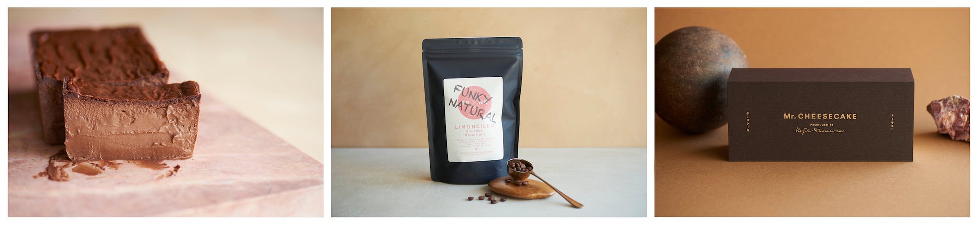 そしてもうひとつが昨年も販売した「Mr. CHEESECAKE BLACK cacao」。焦がしバターの生み出す幸福感や旨味を感じる香り、プラリネアーモンドペーストのキャラメルやナッツから感じる深いコク、クローブからは華やかさとスパイシーさを感じられるようにしています。マスカルポーネやブラックチェリーのコクや旨味は、カカオの味わいをベースから支えており、全ての素材がカカオのおいしさのために手を取り合っているようなイメージで仕上げました。まるでクリームチーズを使った生チョコレートにも感じられるような、なめらかでコクのある味わいです。冷たいままでもお楽しみいただけて、温度が上がると共に香ばしさやカカオのコクのある旨味を感じやすくなります。