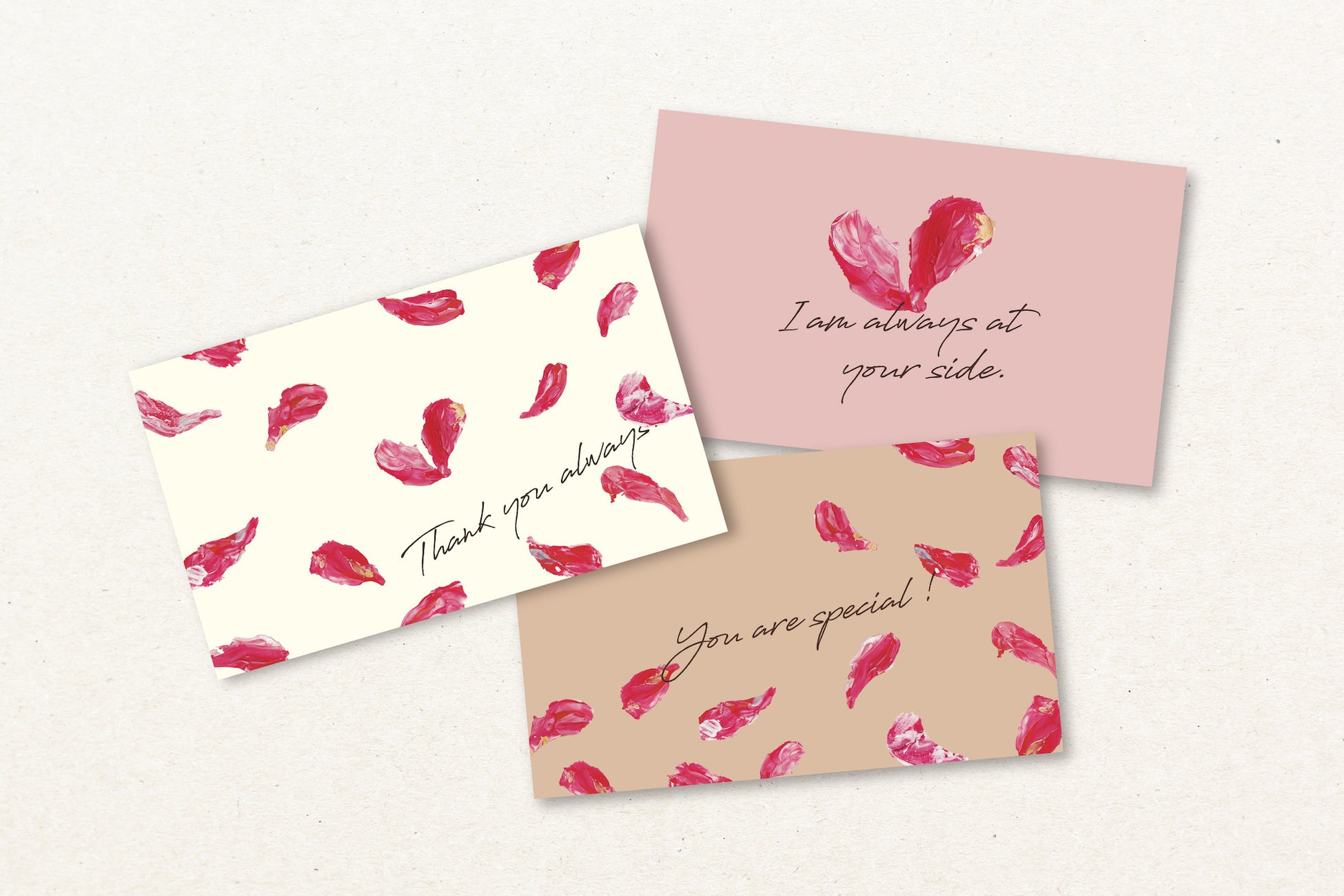 さらに今年は、バレンタイン限定デザインのギフトバッグとメッセージカードをご用意しました。ギフトバッグは、ハートに型取った花びらをメインにたくさんの花びらを散りばめたデザインに。無料のメッセージカードは、感謝の気持ちをさまざまな形で表現した3種類のオリジナルデザインの中から、ランダムでお届けします。