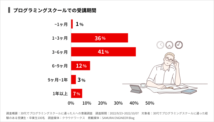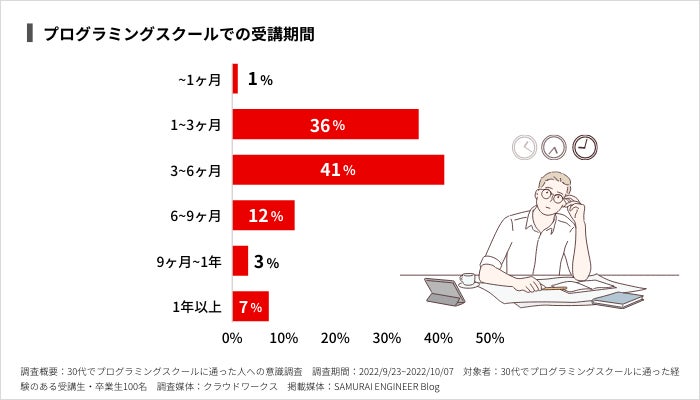 [2]30代の77%がプログラミングスクールを受講期間「6ヶ月未満」で卒業
