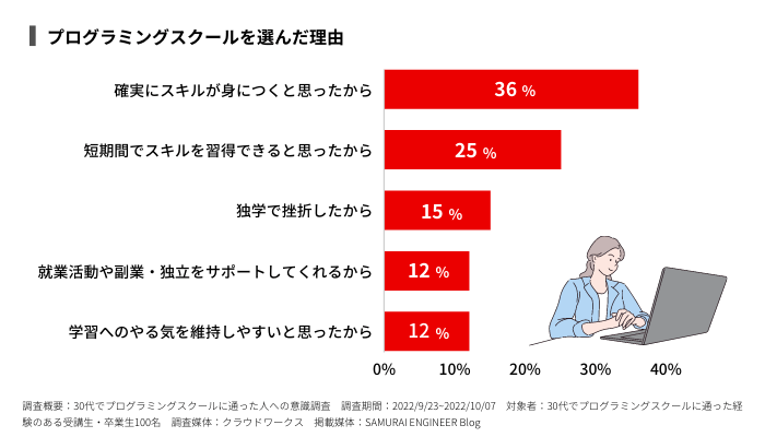 [3]30代がプログラミングスクールを選んだ理由1位は「確実にスキルが身につくと思ったから」