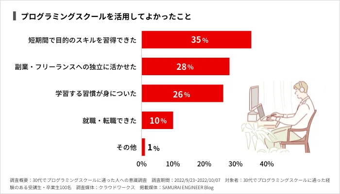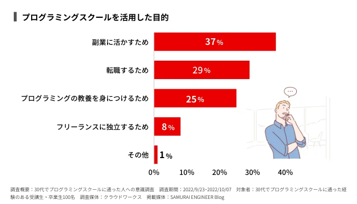 [1]30代がプログラミングスクールを活用した目的の1位は「副業に活かすため」