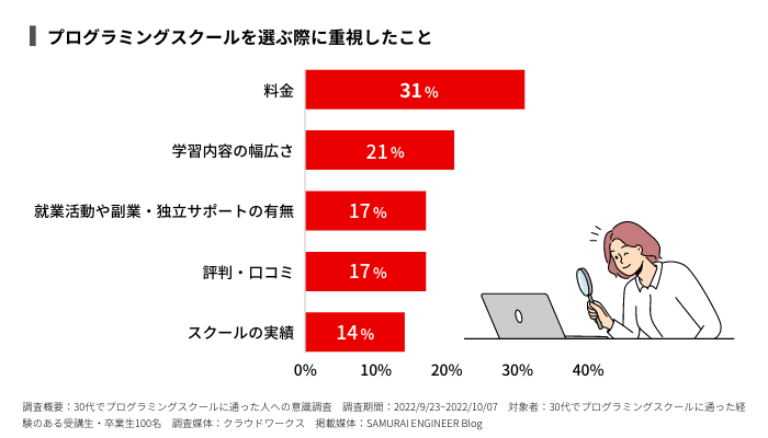 [4]30代がスクール選びで最も重視したことは「料金」という結果に