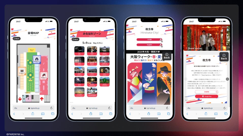 映像内のモノ・ヒト・コト・音・場所等に触れるだけで情報にアクセスできる、インタラクティブ動画技術「Tig(ティグ)」をベースとした各種映像ソリューションを提供し「Re:design communication:伝えるを再定義する」を実現するパロニム株式会社(本社:東京都中央区、代表取締役:小林道生、以下「パロニム」)は、2025年日本国際博覧会(大阪・関西万博)で開催のイベント「大阪ウィーク~春・夏・秋~ 地域の魅力発見ツアー ~大阪43市町村の見どころ~」において、「Tig(ティグ)」が採用されたことをお知らせいたします。