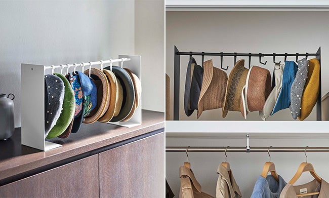 帽子を掛けて収納できるので、帽子の型くずれを防ぎ、目当ての帽子をサッと取り出すことができます。