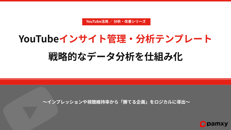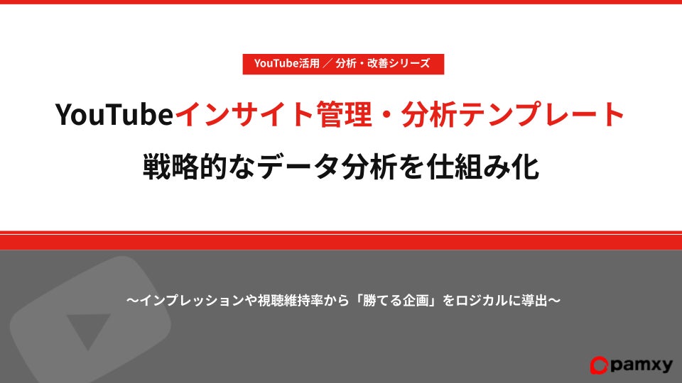 pamxy、戦略的なデータ分析を仕組み化する「YouTubeインサイト管理・分析テンプレート」を本日無料公開。同時にデータ分析連載 第2弾を解禁