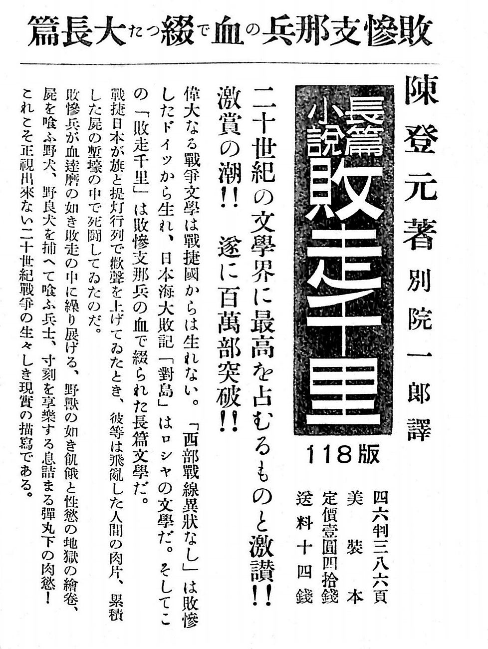 「戦争は掠奪商売であり、軍隊はよく訓練された匪賊である」中国軍の内情を暴露し、GHQに焚書にされた幻のベストセラー『普及版〔復刻版〕敗走千里』発売