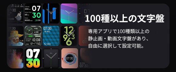 あなたの気分や運動状況を感知し文字盤を自動的に変換可能【100種類文字盤/100種類運動モード/IP68防水/Android・iOSに対応】