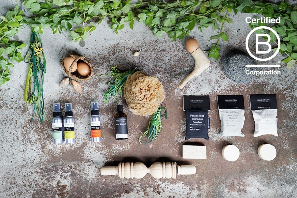 「事業性と社会性を両立させたビジネスを創りたい」というふたつの想いから生まれました。発酵の技術で未利用資源に新たな価値を見出し、これらが生まれ変わり、再生・循環する社会を構築することを目指した事業を続けています。この度、私たちの企業活動が評価され、2022年3月、オーガニック認証化粧品ブランドおよび化粧品原料メーカーとしても日本初の国際認証「B Corp」を取得しました。