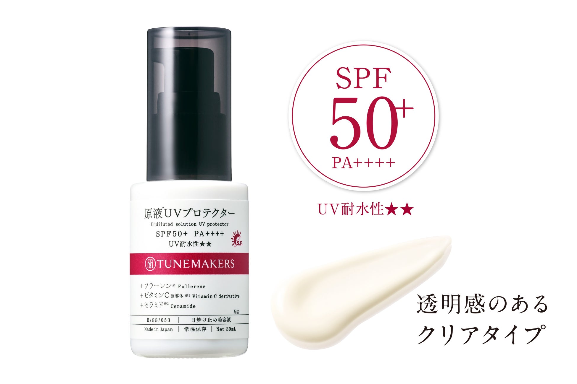 日焼け止め市場は成長を続ける中、多機能商品の需要が高まりを見せています。チューンメーカーズでは、2018年にUV美容液『原液*UVプロテクター』を発売。お客様から「SPF50+ PA++++でも乾燥しない」「被膜感がなく、軽やかでストレスフリーなつけ心地」「まるで美容液みたい」といった高い評価を得てきました。